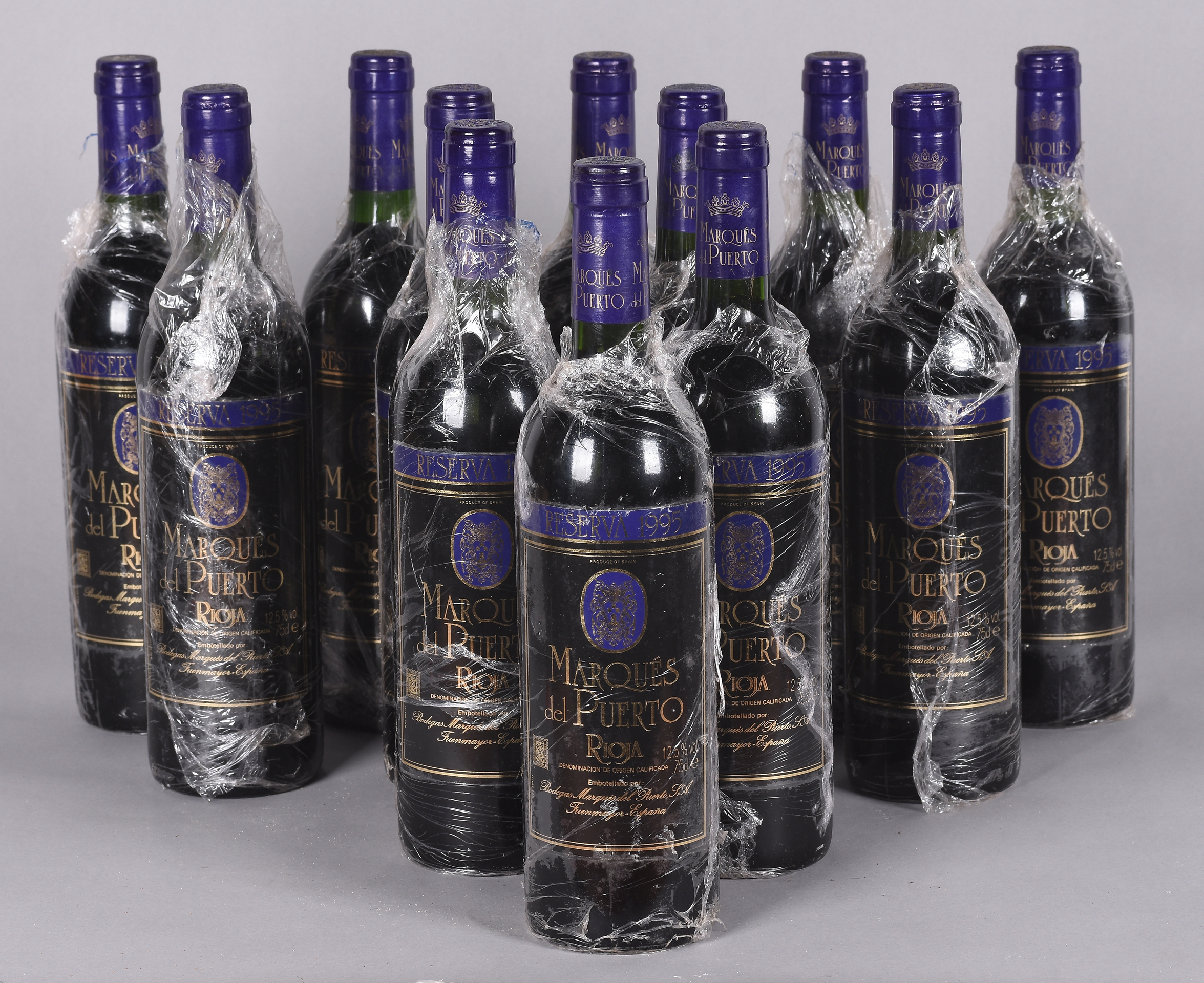 Lote compuesto por 12 botellas de vino de la Bodega MARQUÉS DEL PUERTO, Reserva de 1995. Fuenmayor, La Rioja.