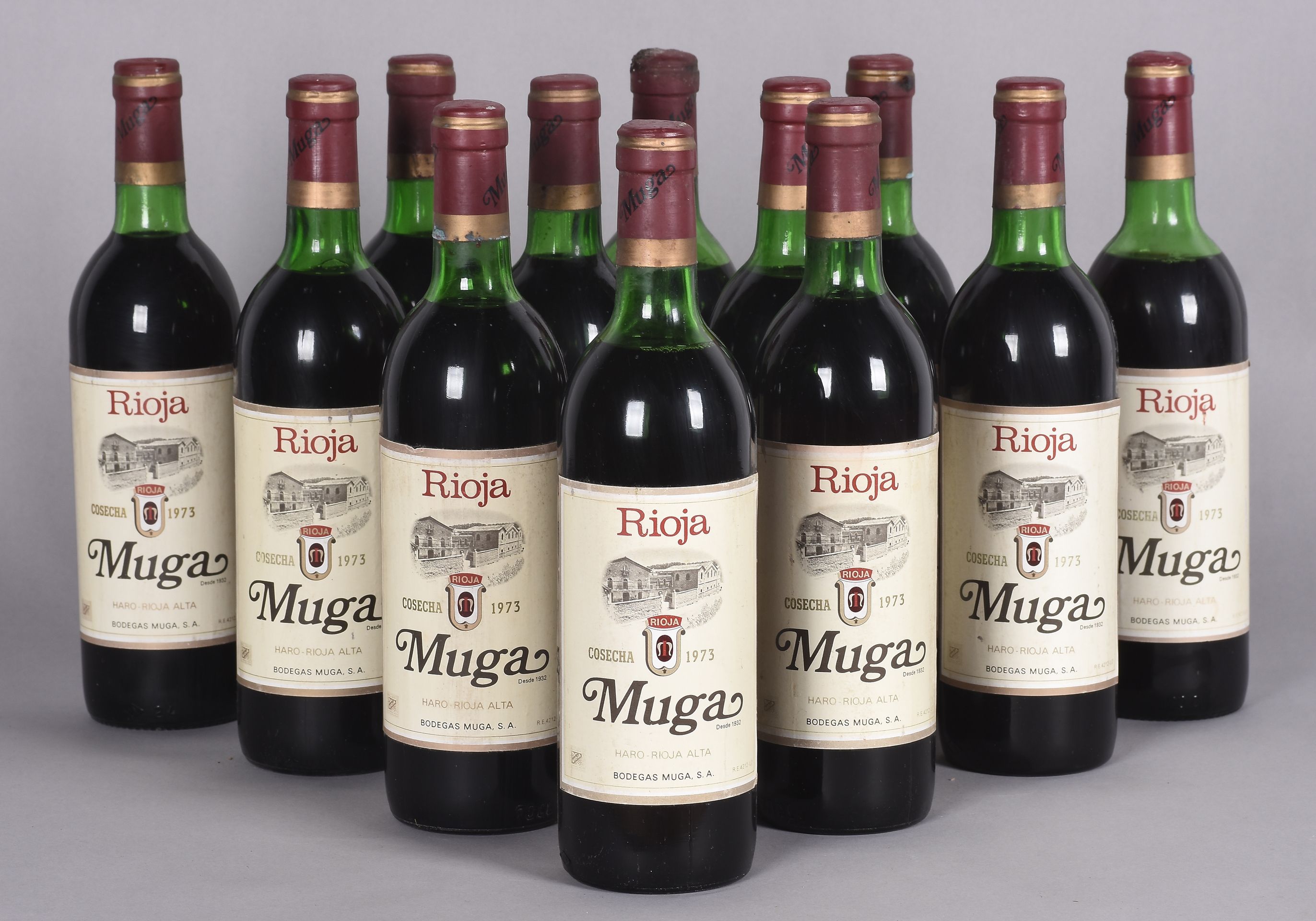 Lote compuesto por 12 botellas de vino tinto Bodegas Muga crianza 1973. Haro La Rioja