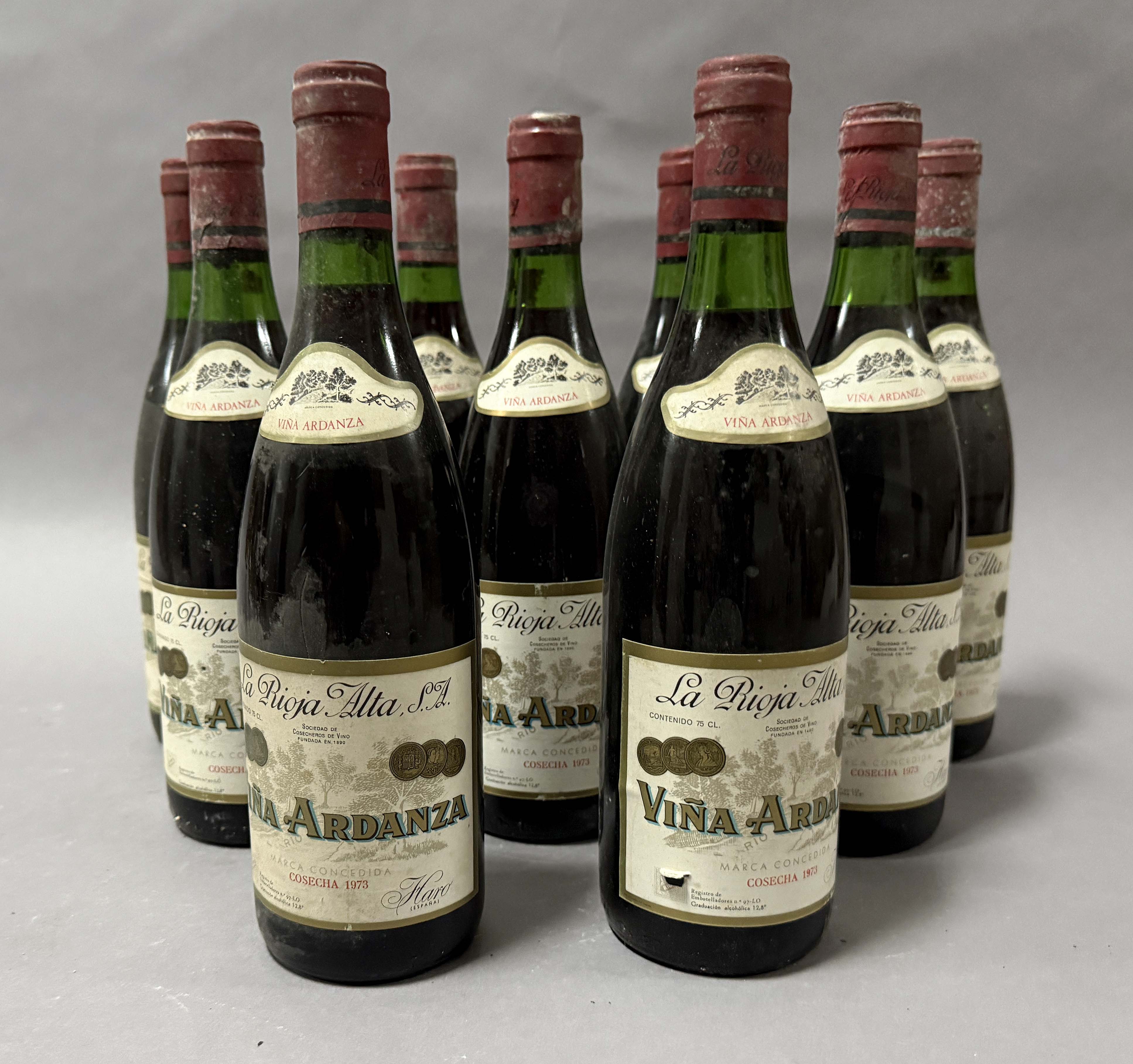 Lote compuesto por 9 botellas de vino Bodegas La rioja Alta VIÑA ARDANZA Reserva de 1973. Haro La Rioja