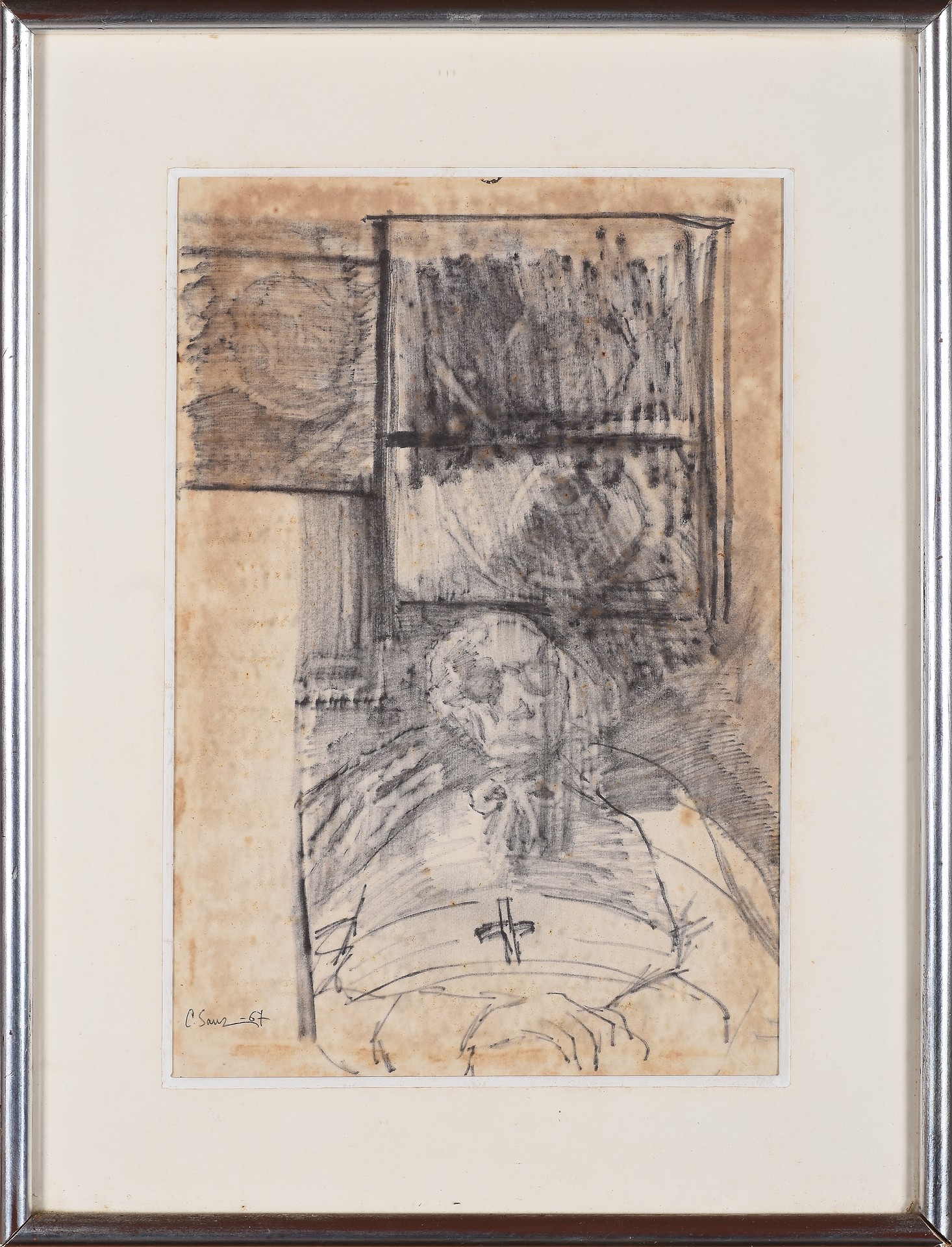 CARLOS SANZ(Donostia, Gipuzkoa, 1943-1987)"Sin título"Frotagge y tinta sobre papel32 x 22 cm