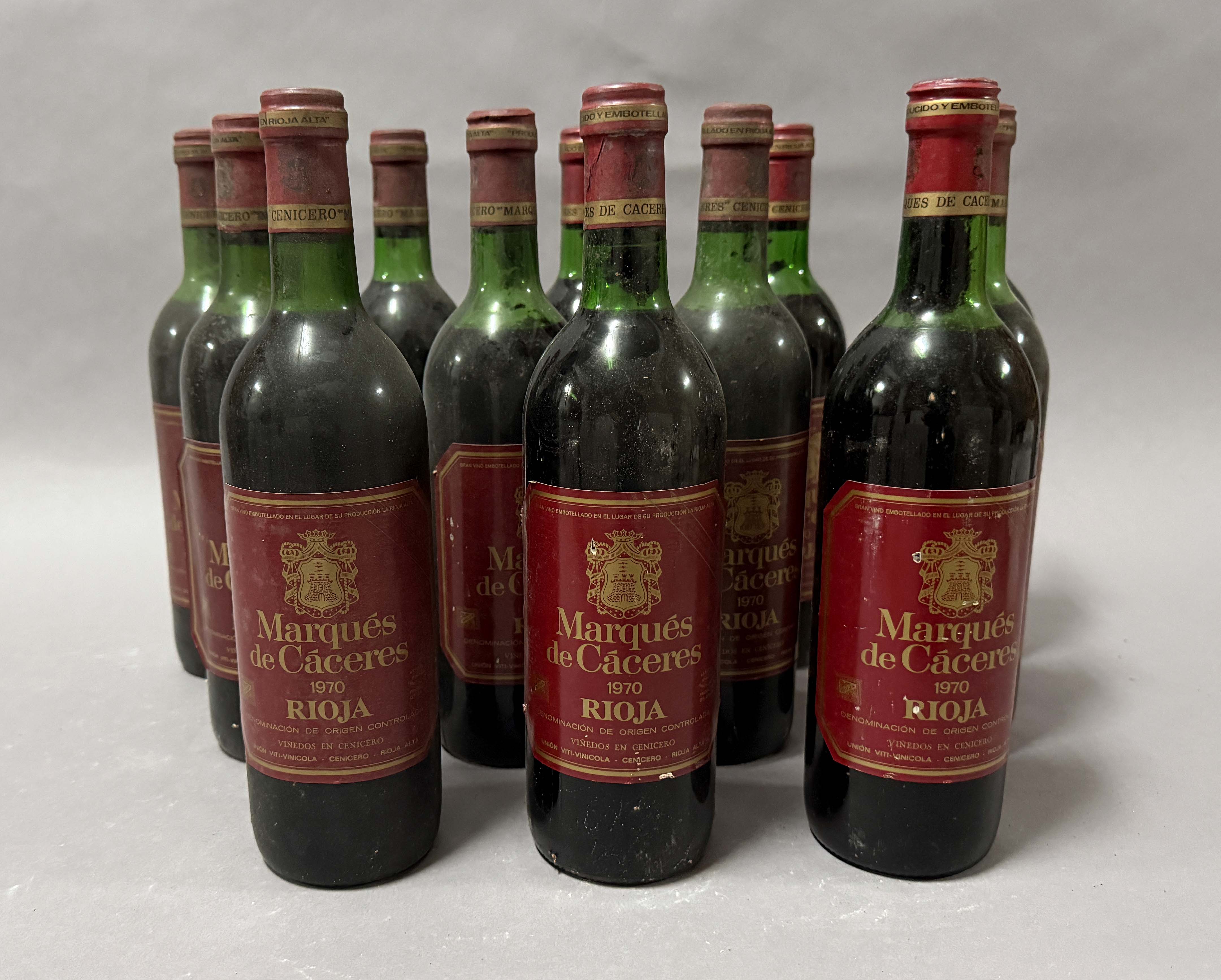Lote compuesto por 12 botellas de vino tinto Bodegas Marques de Cáceres Crianza 1970. Cenicero La Rioja