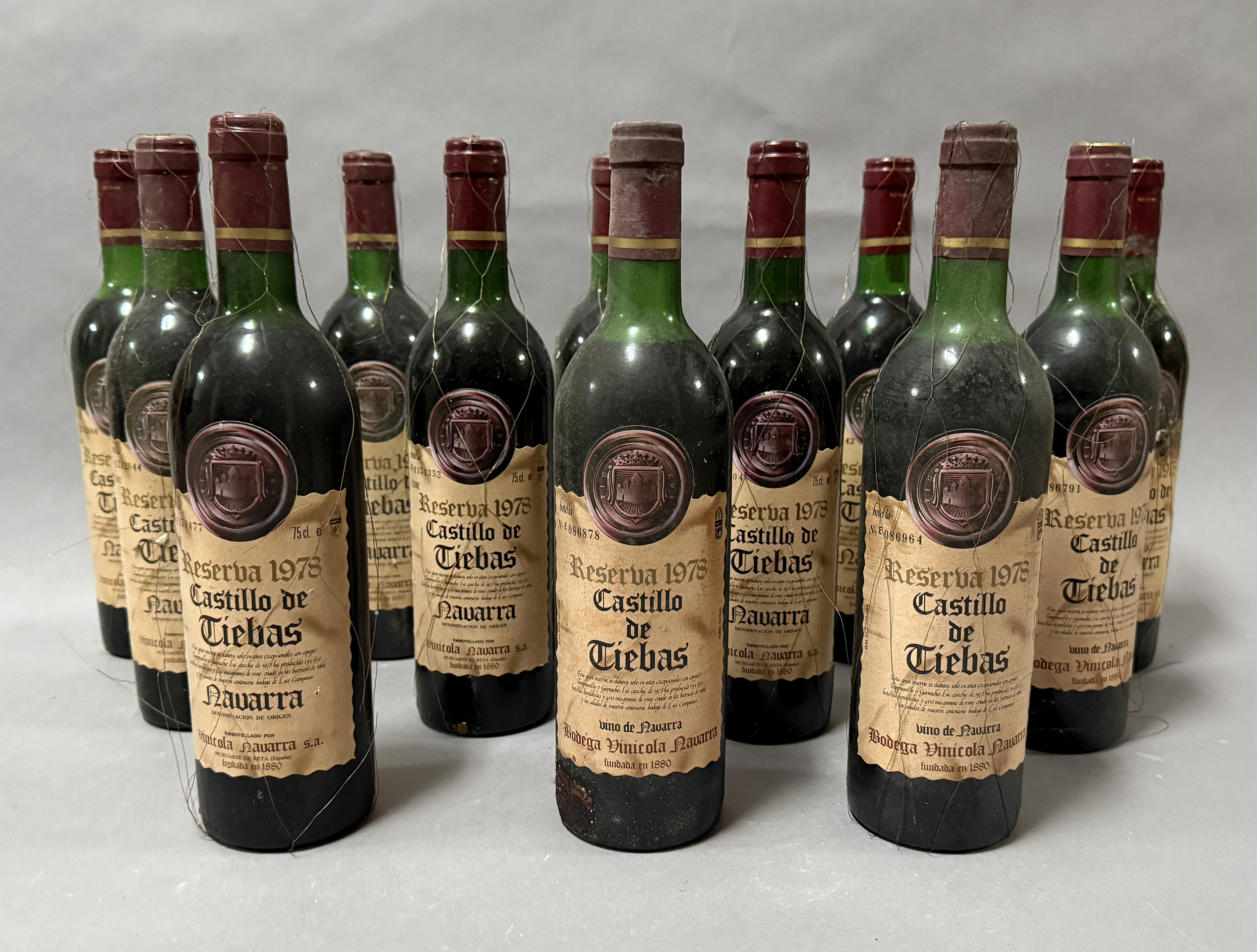 Lote compuesto por 12 botellas de vino tinto Bodegas Vinícola Navarra Castillo de Tiebas Reserva 1978. Muruarte de Reta Navarra