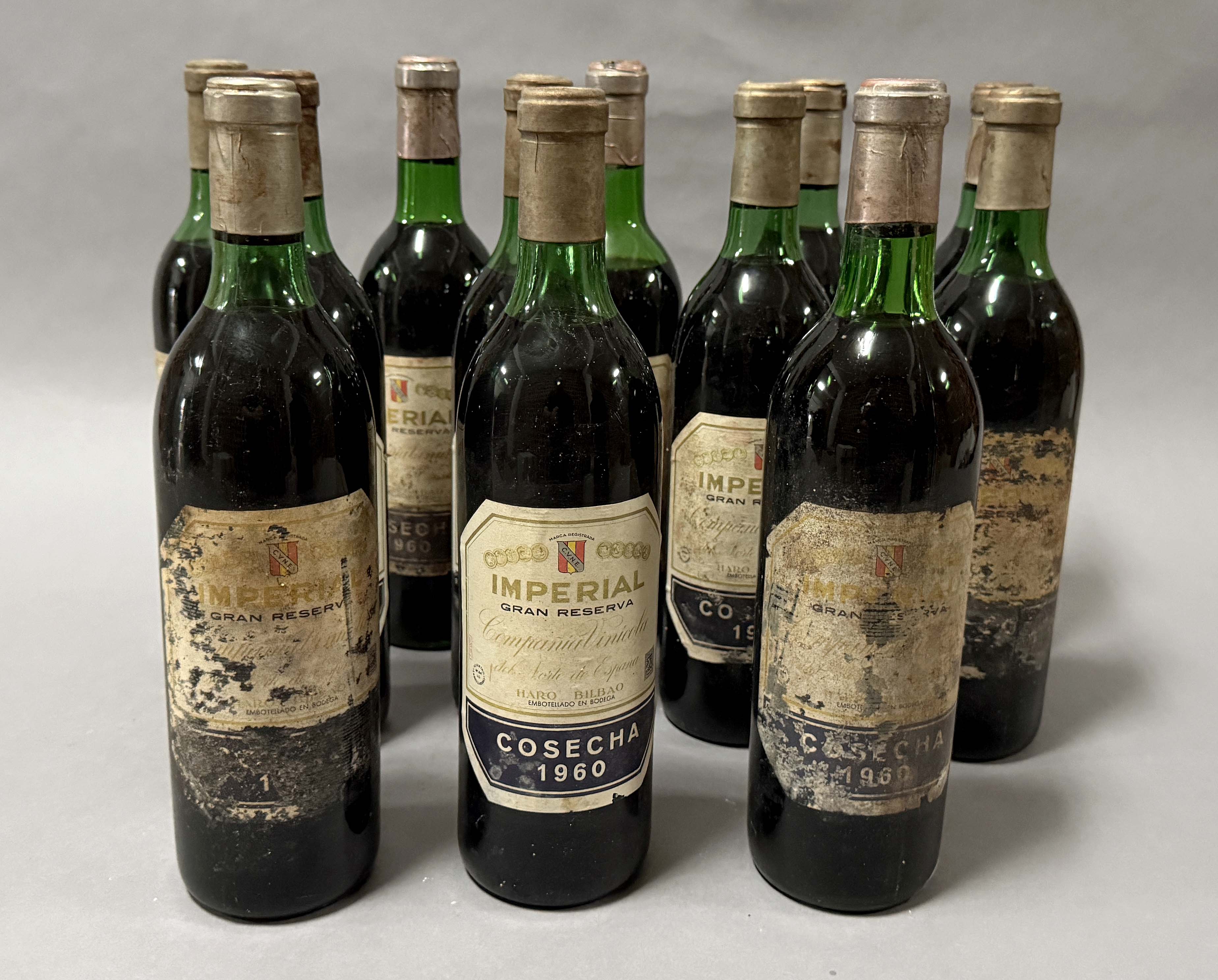Lote compuesto por 12 botellas de Bodegas CVNE Imperial gran reserva año 1960. Haro La Rioja