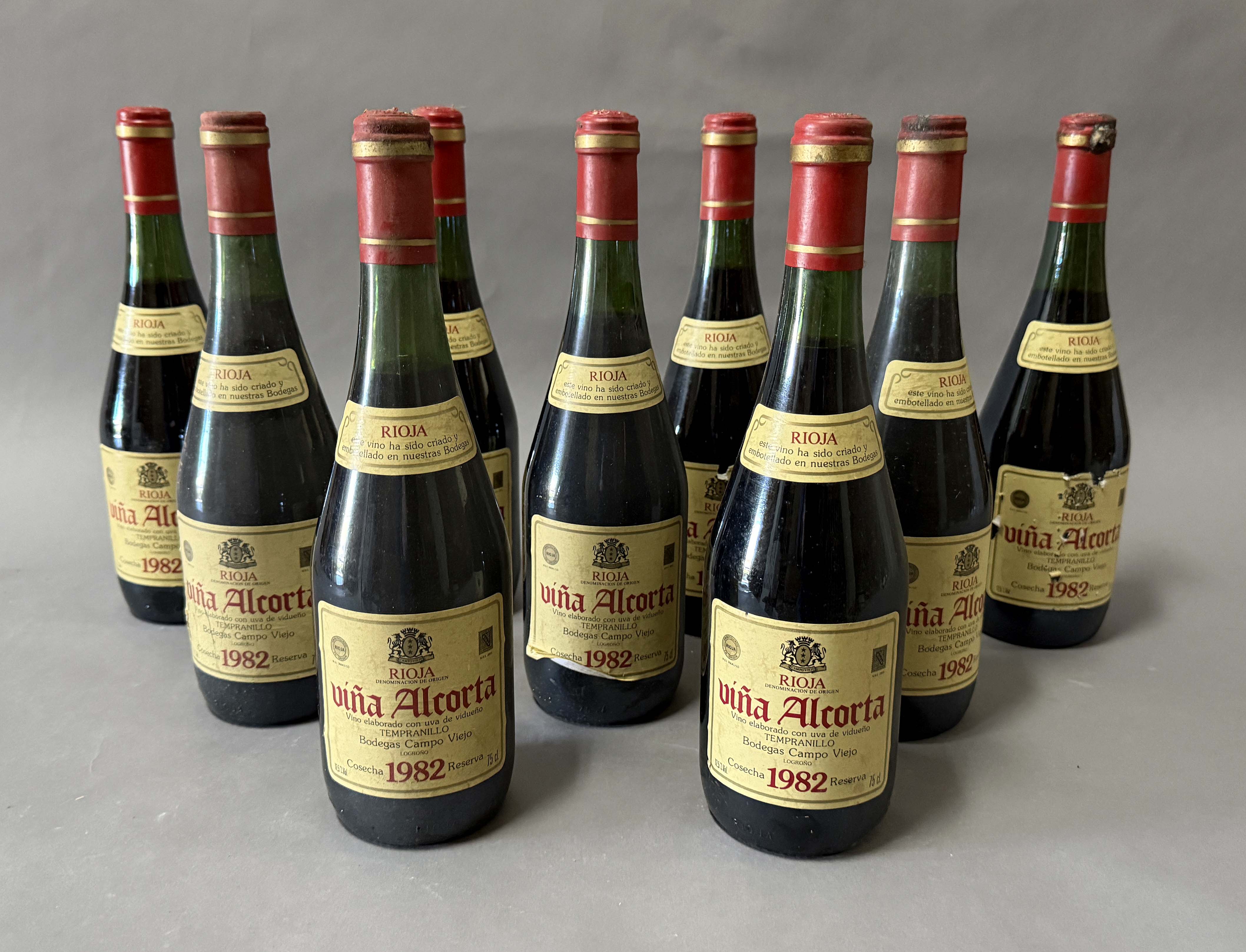 Lote compuesto por 9 botellas de vino tinto Bodegas Campoviejo VIÑA ALCORTA Reserva 1982. Logroño La Rioja