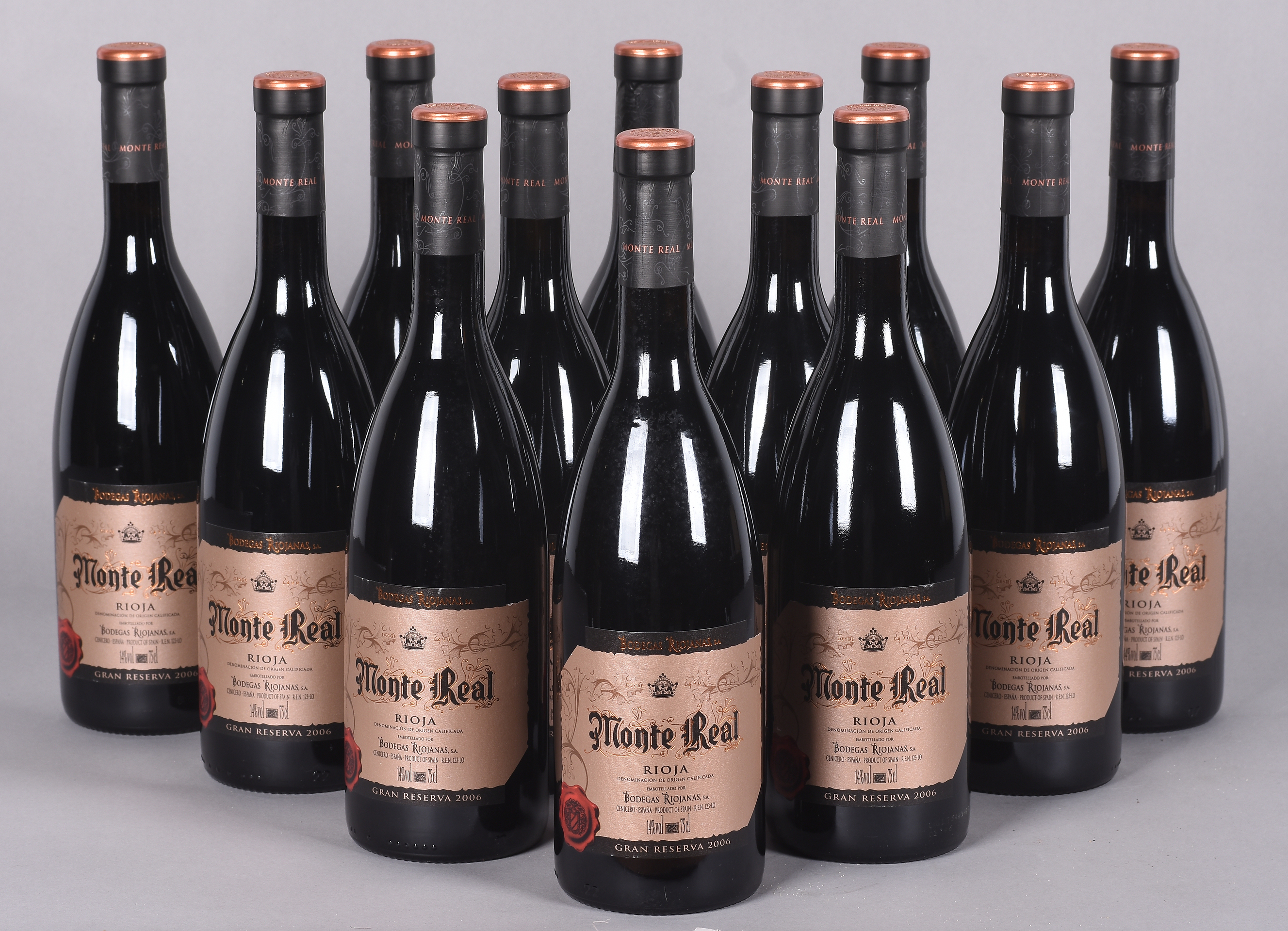 Lote compuesto por 12 botellas de vino de la Bodega BODEGAS RIOJANAS. MONTE REAL, Gran Reserva de 2006. Cenicero, La Rioja.