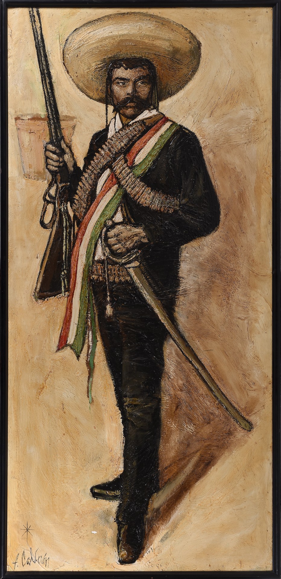FERNANDO CALDERÓN Y LÓPEZ DE ARROYABE(Santander, 1928 – 2003)"Emiliano Zapata"Óleo sobre lienzo200 x 100 cm