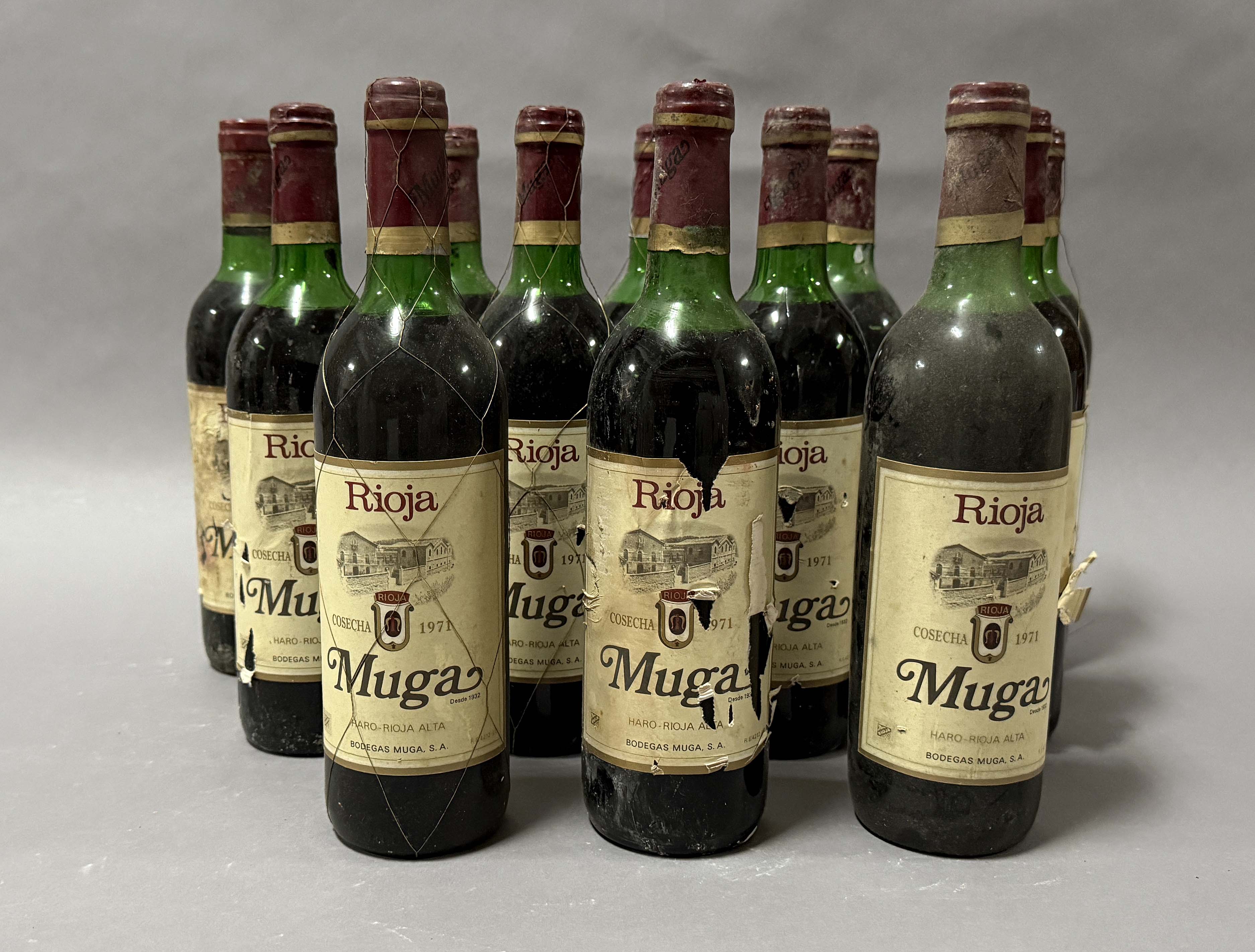 Lote compuesto por 12 botellas de vino Bodegas MUGA crianza de 1971. Haro La Rioja