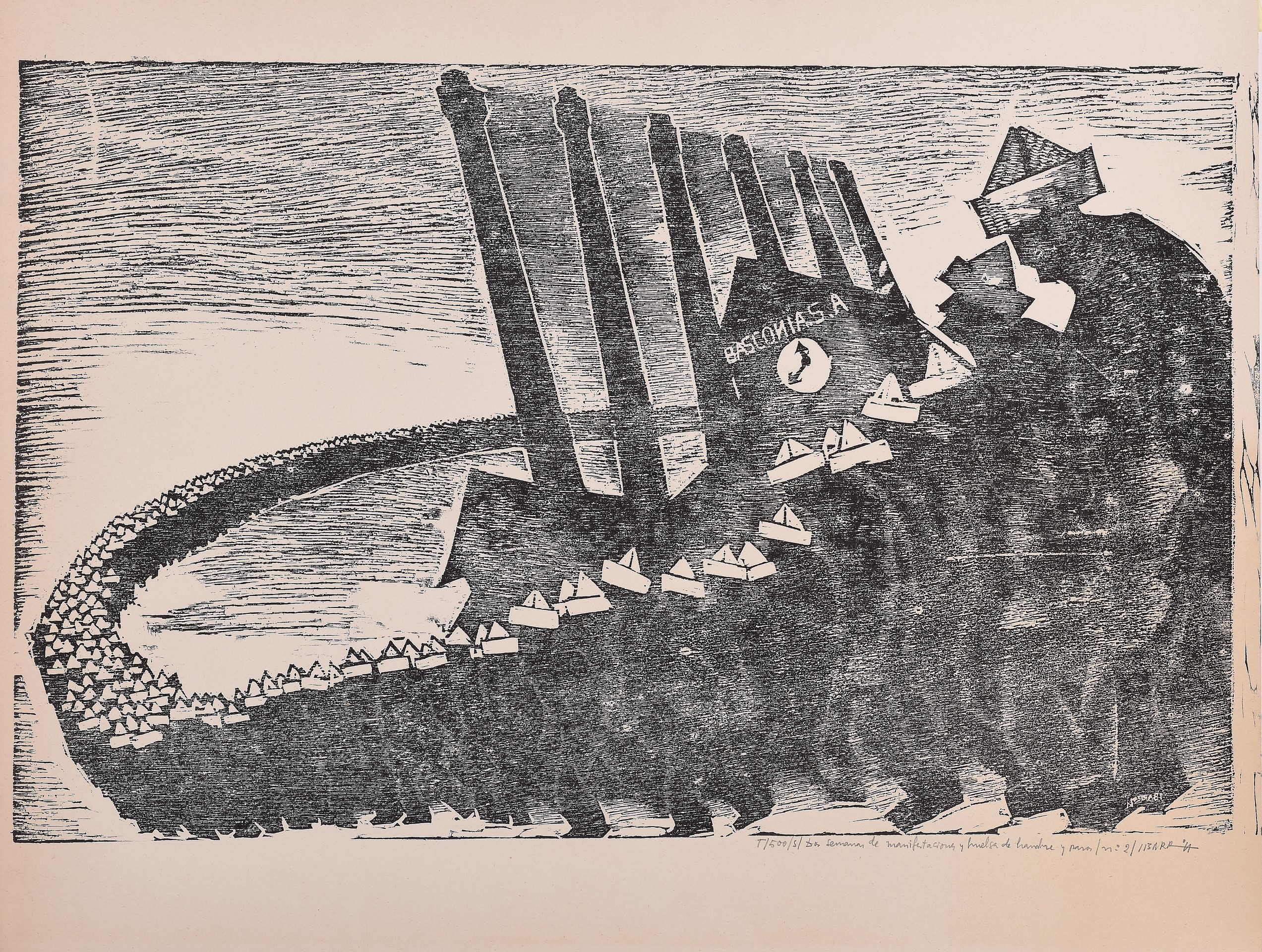 AGUSTÍN IBARROLA GOICOECHEA(Basauri, Bizkaia, 1930 - Galdakao, Bizkaia, 2023)"Dos semanas de manifestaciones y huelga de hambre y paros"Grabado, T/500/S, Nº250 x 65 cm