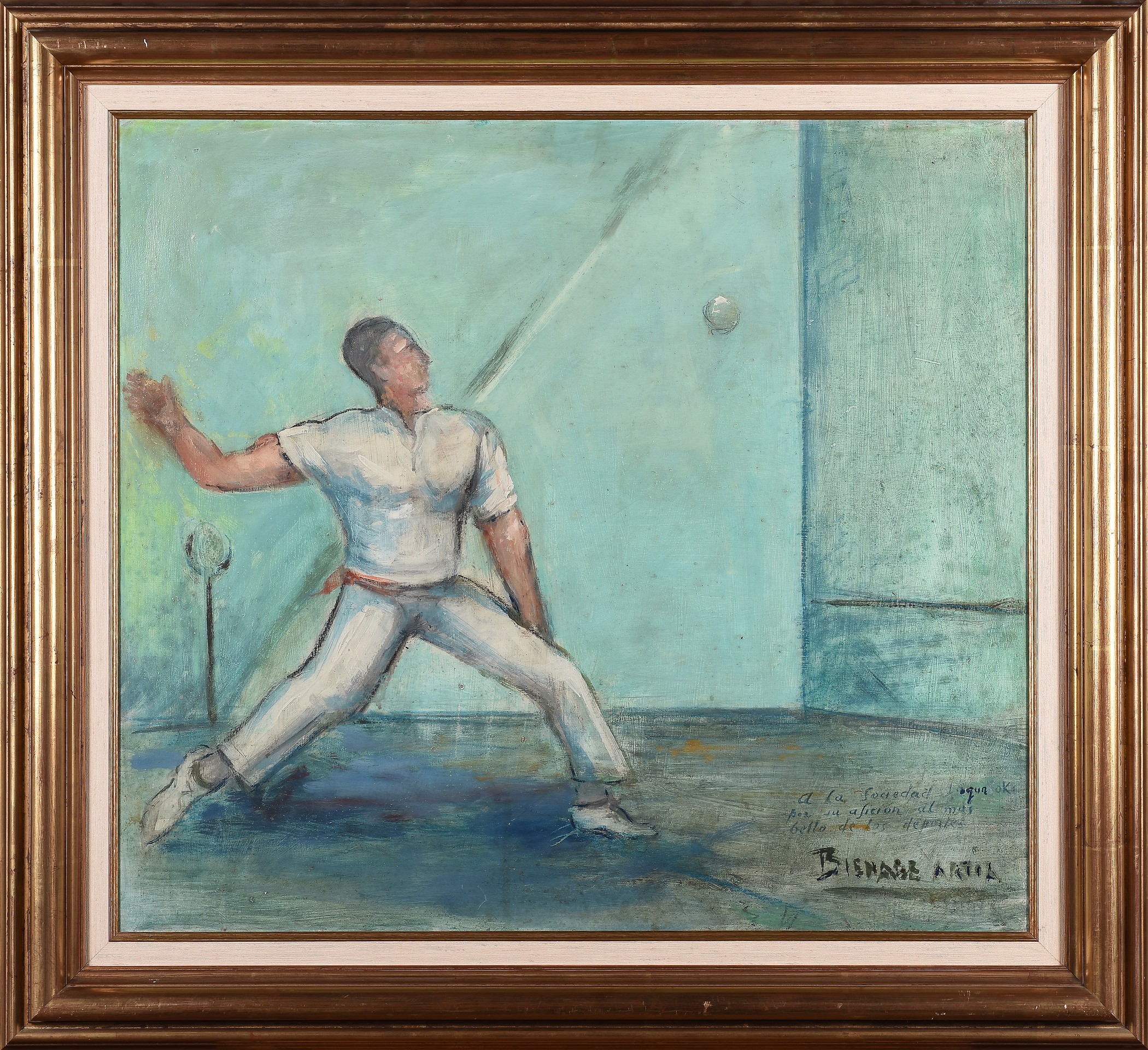 BERNARDINO BIENABE ARTÍA(Irún, Gipuzkoa, 1889-Etxalar, Navarra, 1987)"Pelotari"Óleo sobre tabla65 x 72 cm