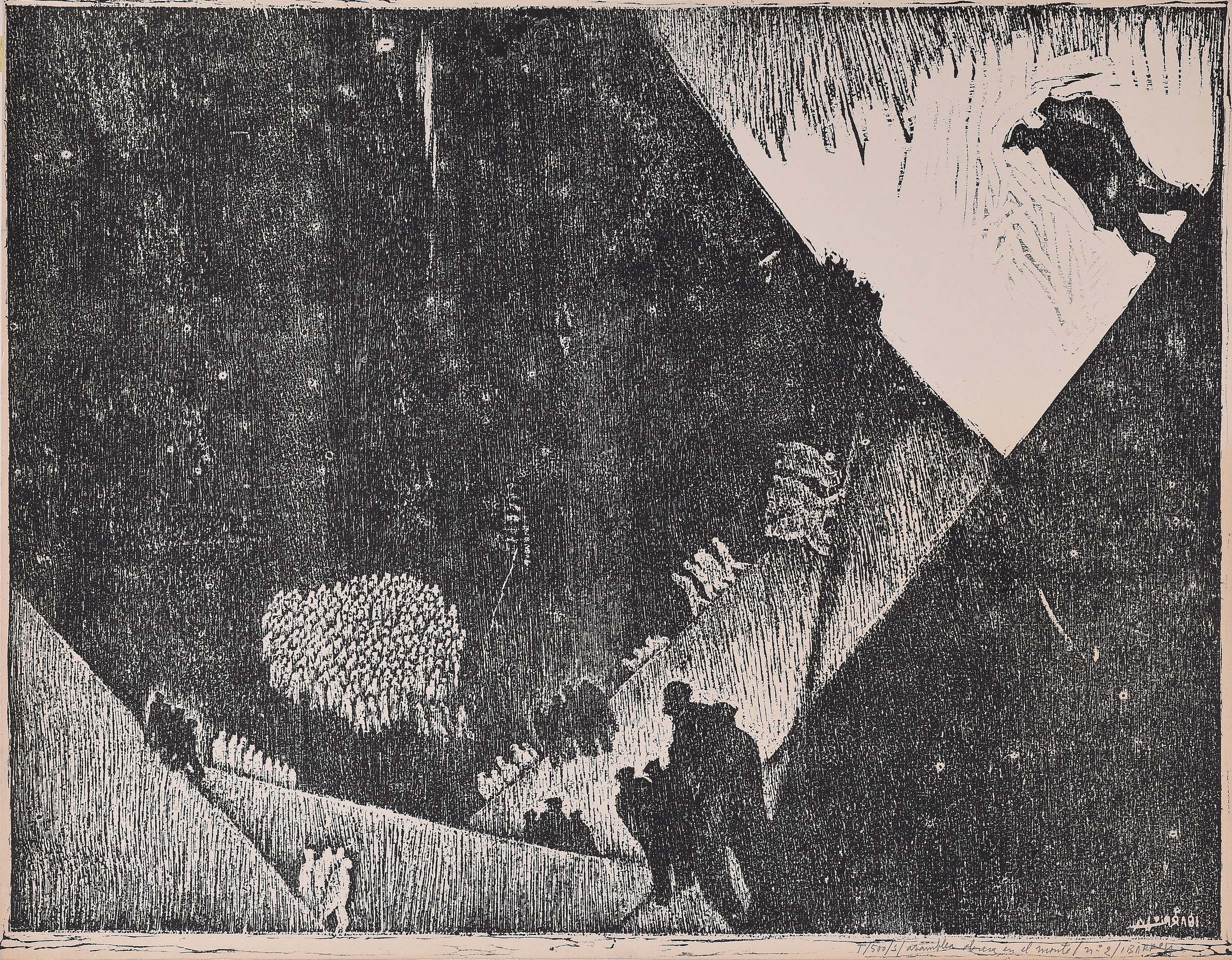 AGUSTÍN IBARROLA GOICOECHEA(Basauri, Bizkaia, 1930 - Galdakao, Bizkaia, 2023)"Asamblea obrera en el monte"Grabado, T/500/S, Nº250 x 65 cm