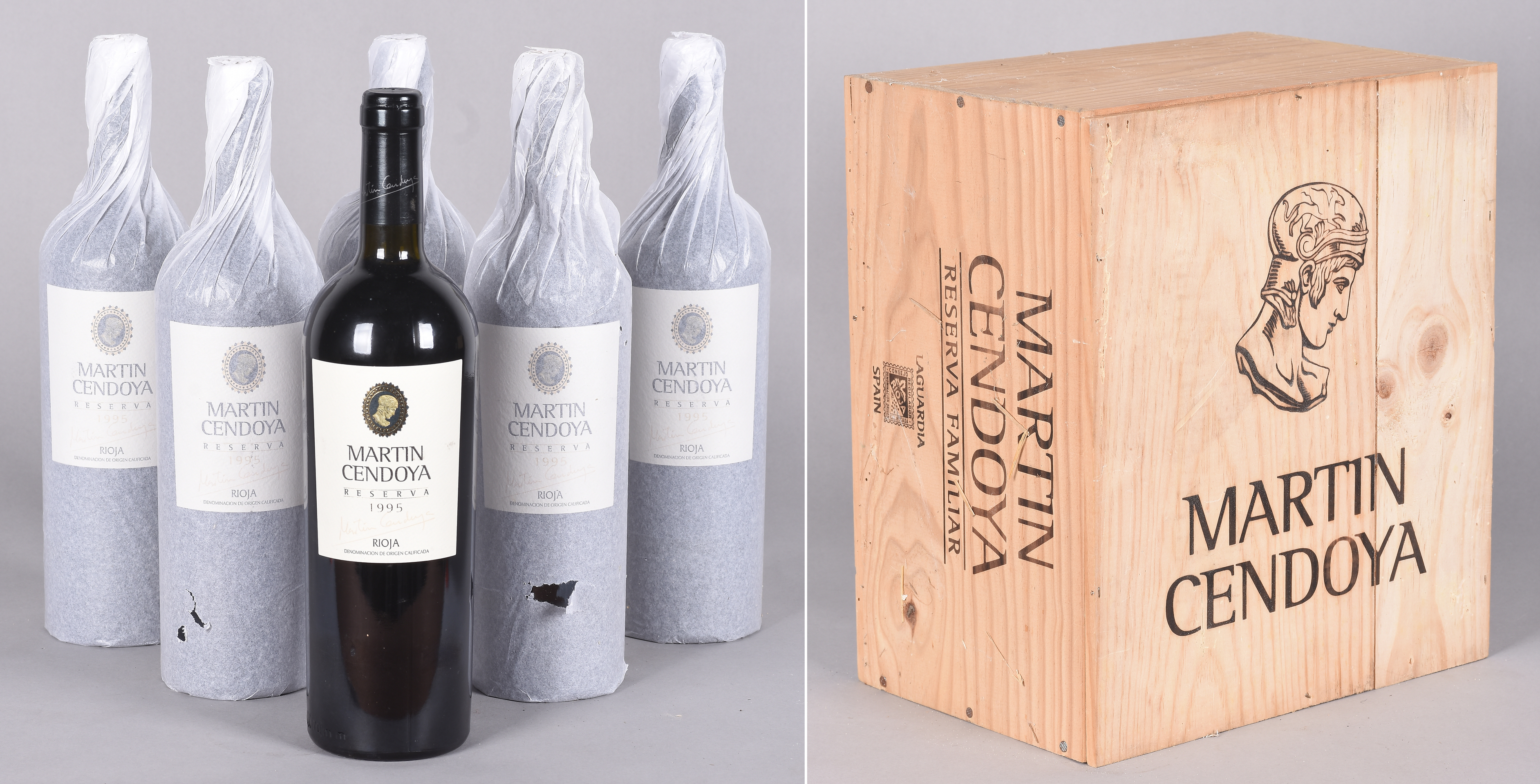 Lote compuesto por 6 botellas de vino de Bodegas EUREN UGARTE. MARTIN CENDOYA, Reserva 1995. Laguardia, La Rioja.