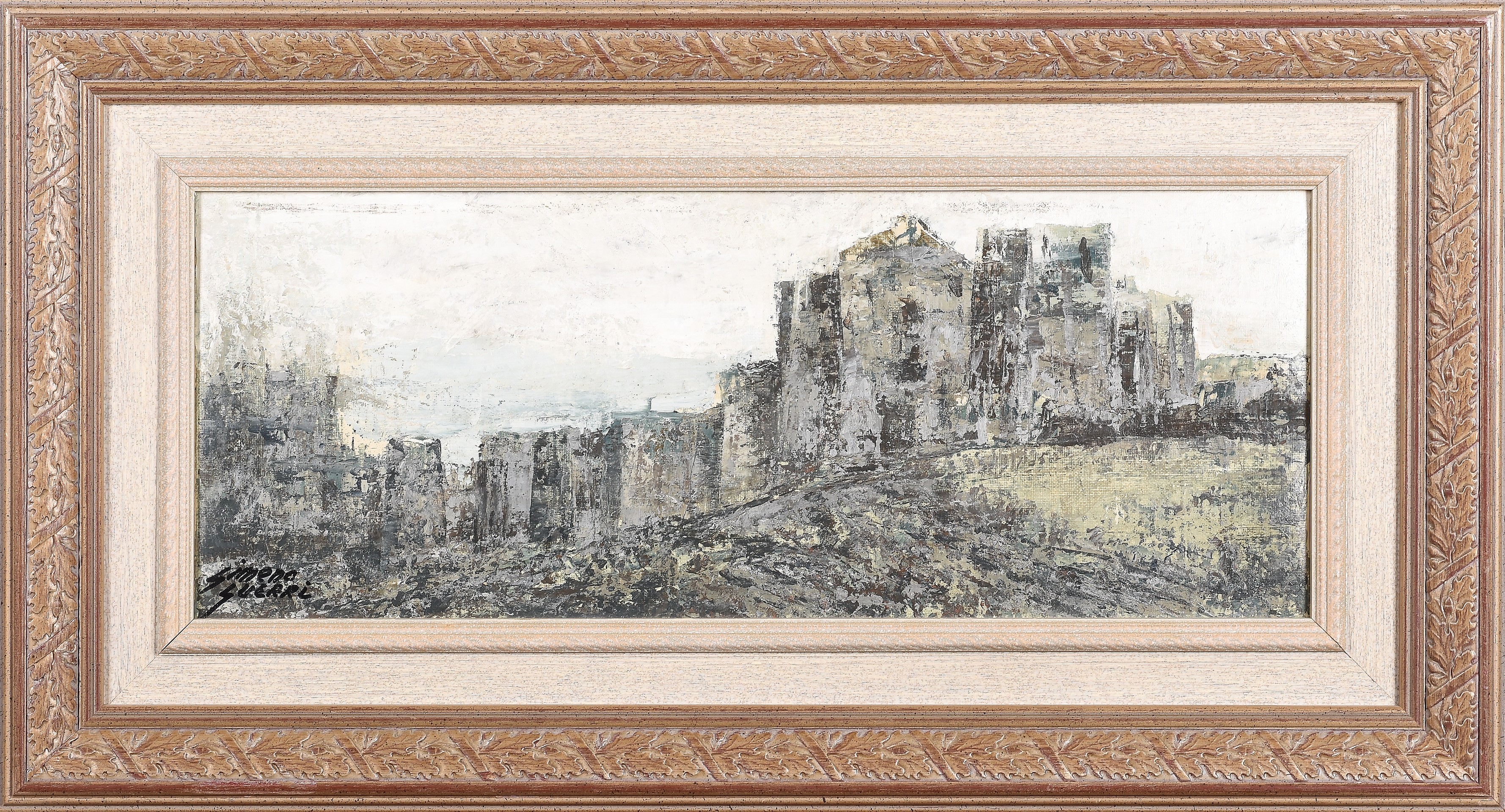 JUAN GIMENO GUERRI(Donostia, Gipuzkoa, 1933)"Castillo de Loarre, Huesca"Óleo sobre lienzo20 x 50 cm