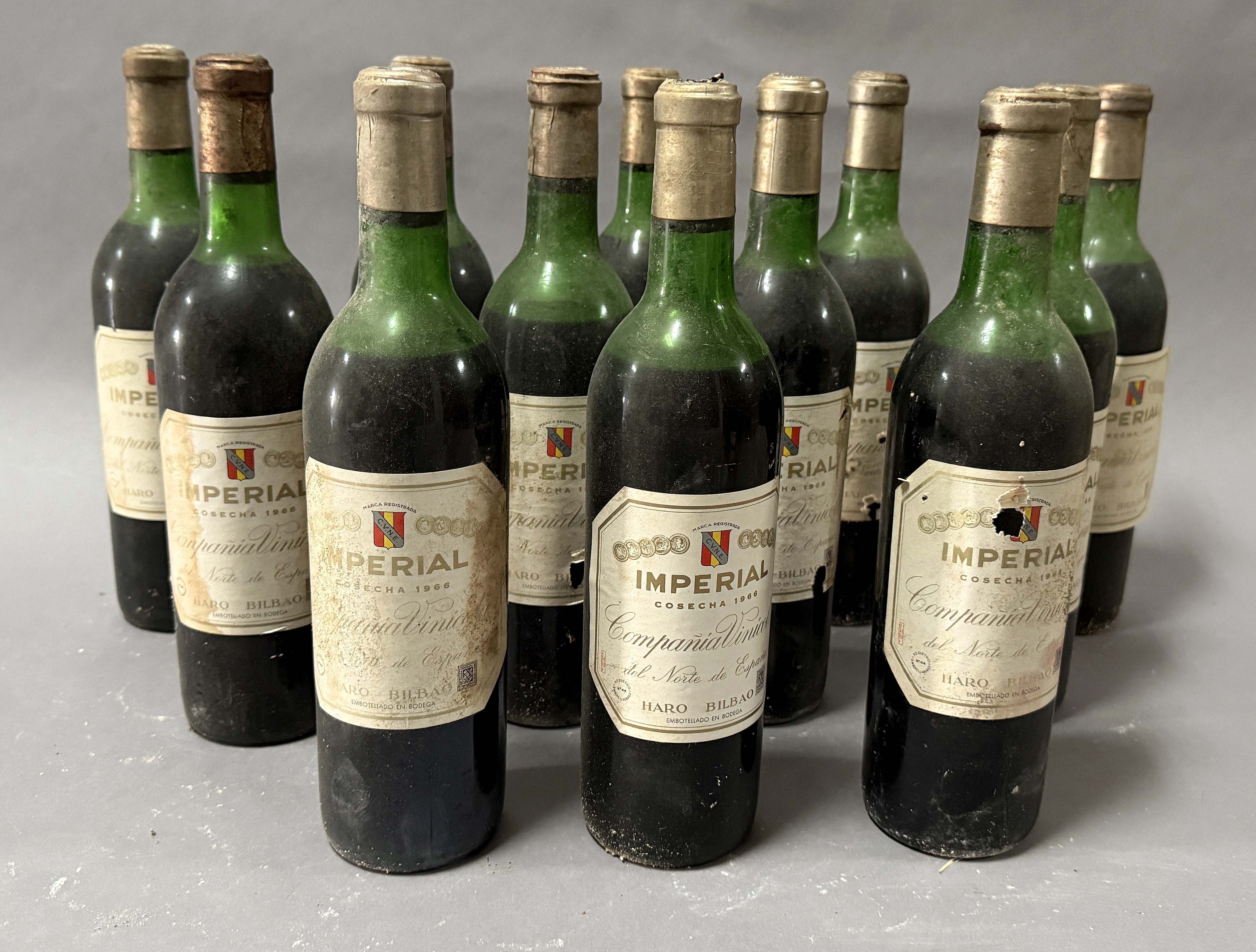 Lote compuesto por 12 botellas de Bodegas CVNE Imperial crianza año 1966. Haro La Rioja