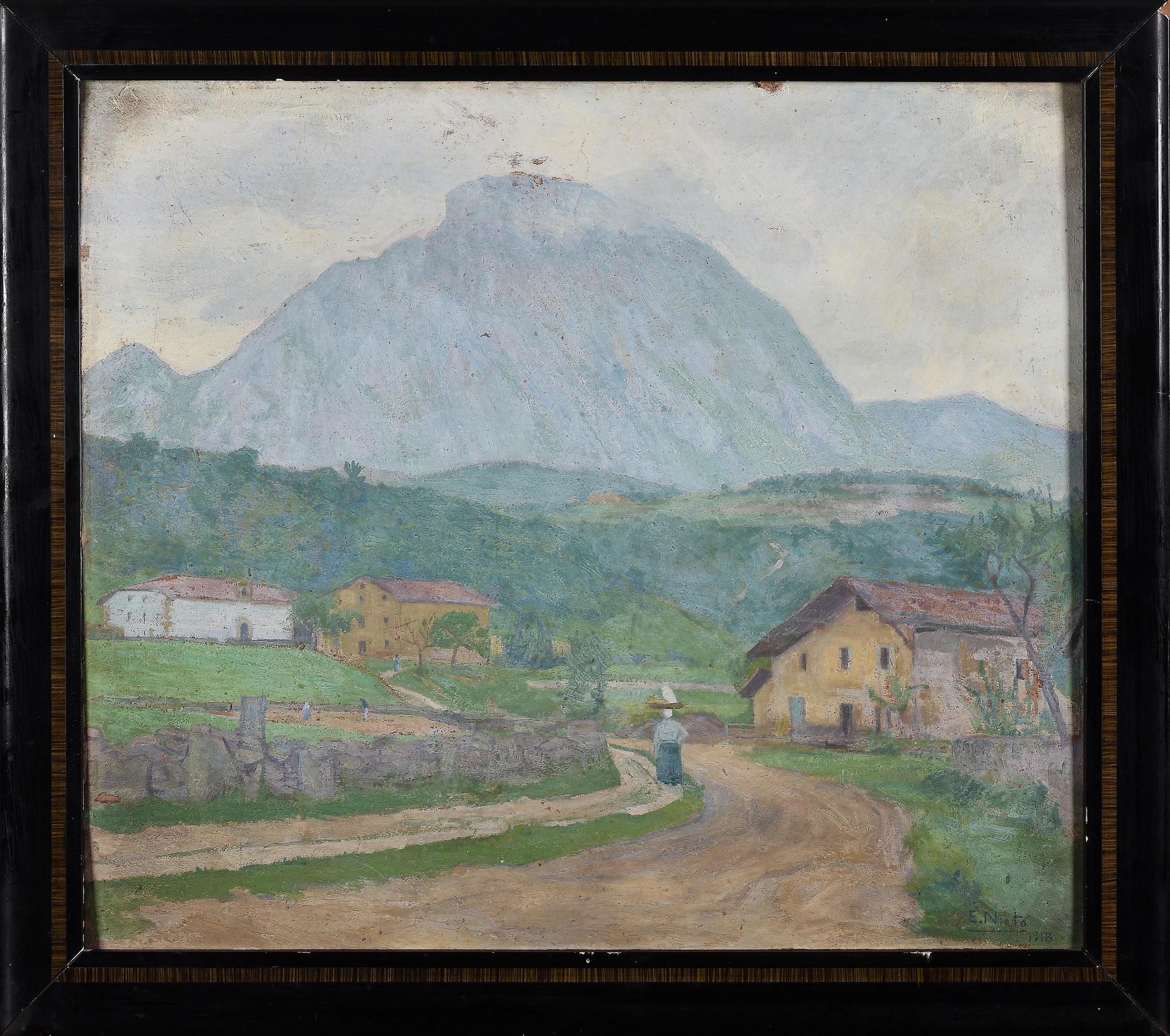 ENRIQUE NIETO URIBARRI(La Arboleda, 1890 - Bilbao, 1936)"Vista de Anboto"Óleo sobre tabla40 x 47 cm