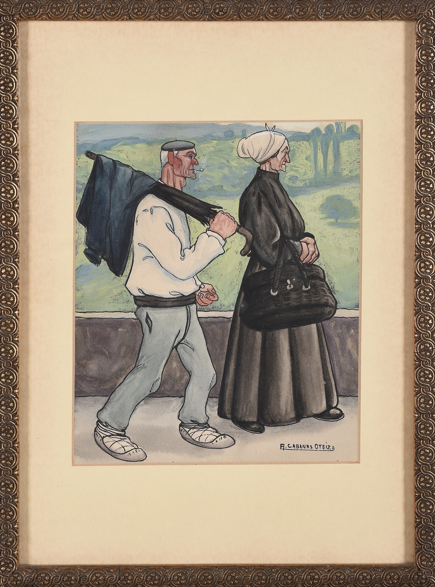 ÁNGEL CABANAS OTEIZA(Gipuzkoa, 1875 - Mendoza, Argentina, 1964)"Aldeanos"Técnica mixta sobre papel.20 x 16 cm