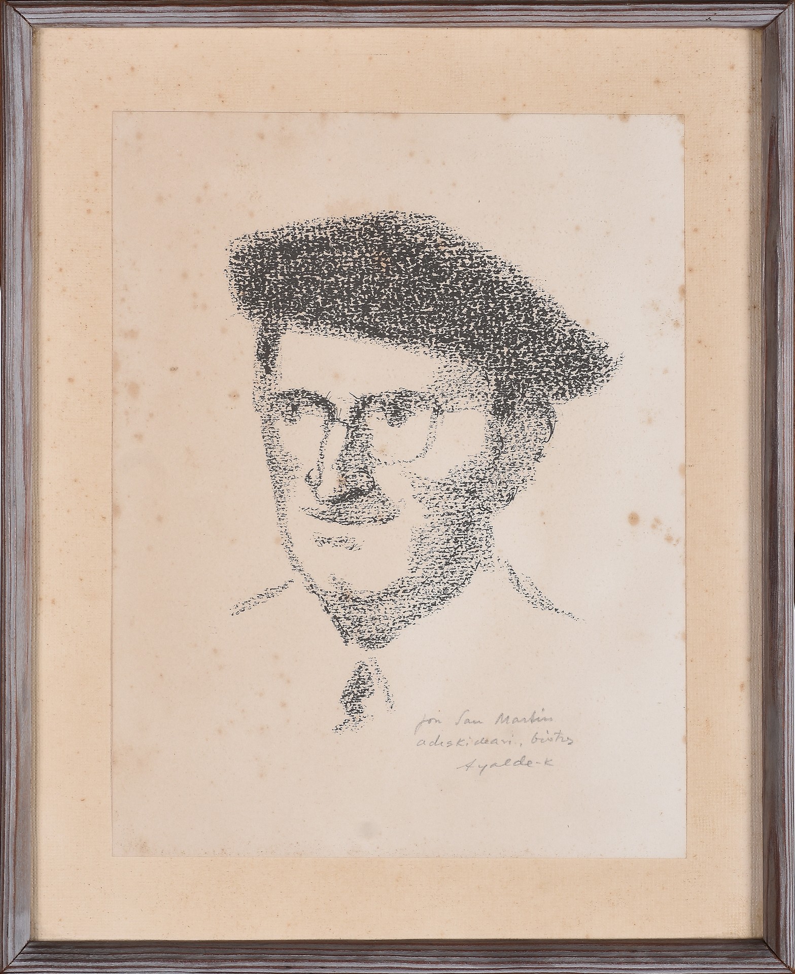 ANTONIO VALVERDE CASAS "AYALDE"(Errenteria, Gipuzkoa, 1915 - Oiartzun, Gipuzkoa, 1970)"Retrato de Jon San Martín"Grabado24 x 19 cm