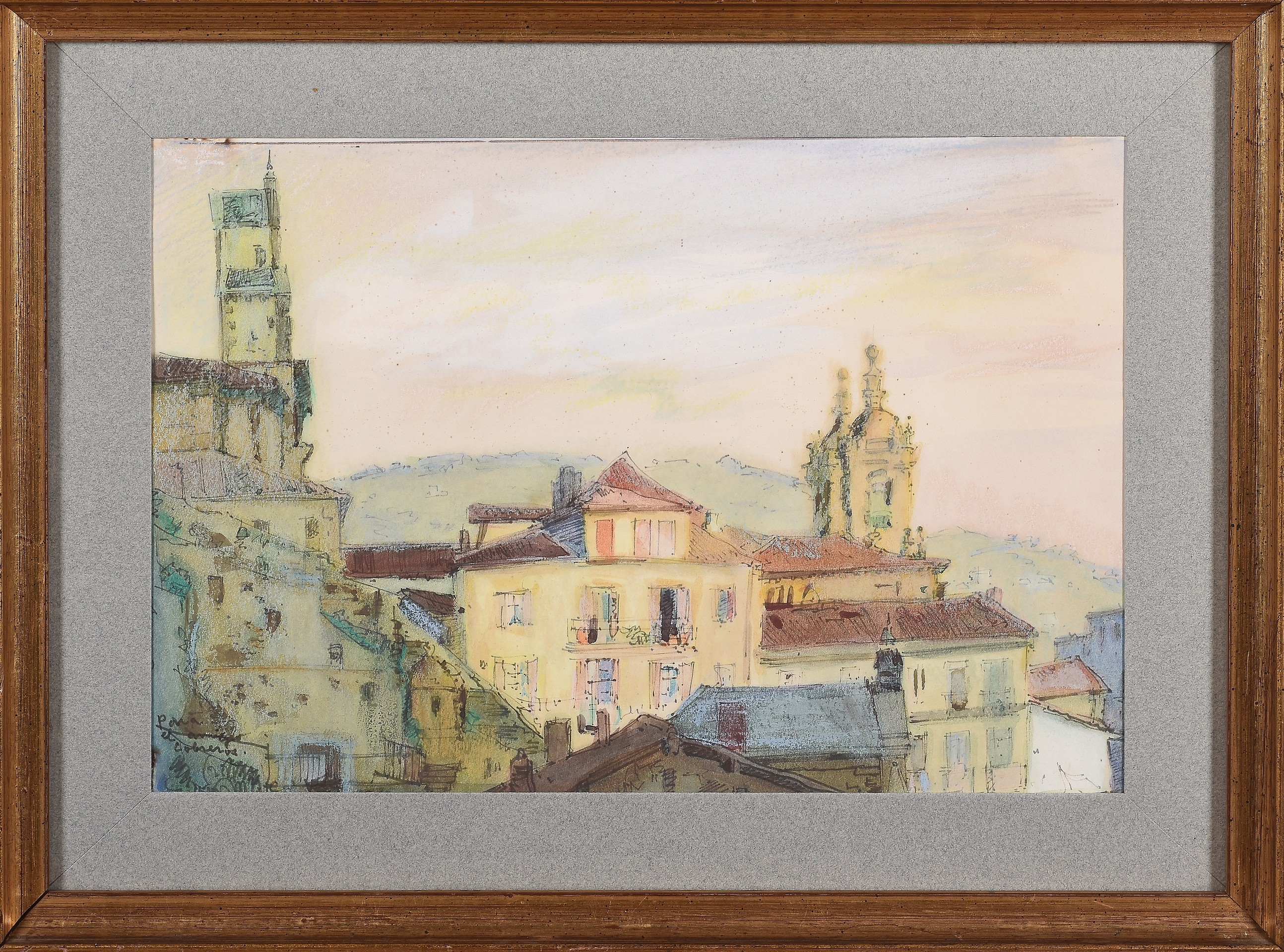 CARLOS LANDI SORONDO(Tolosa, Guipúzcoa 1896 - San Sebastián 1971)"Vista del puerto de Donosti"Técnica mixta sobre papel23 x 32 cm