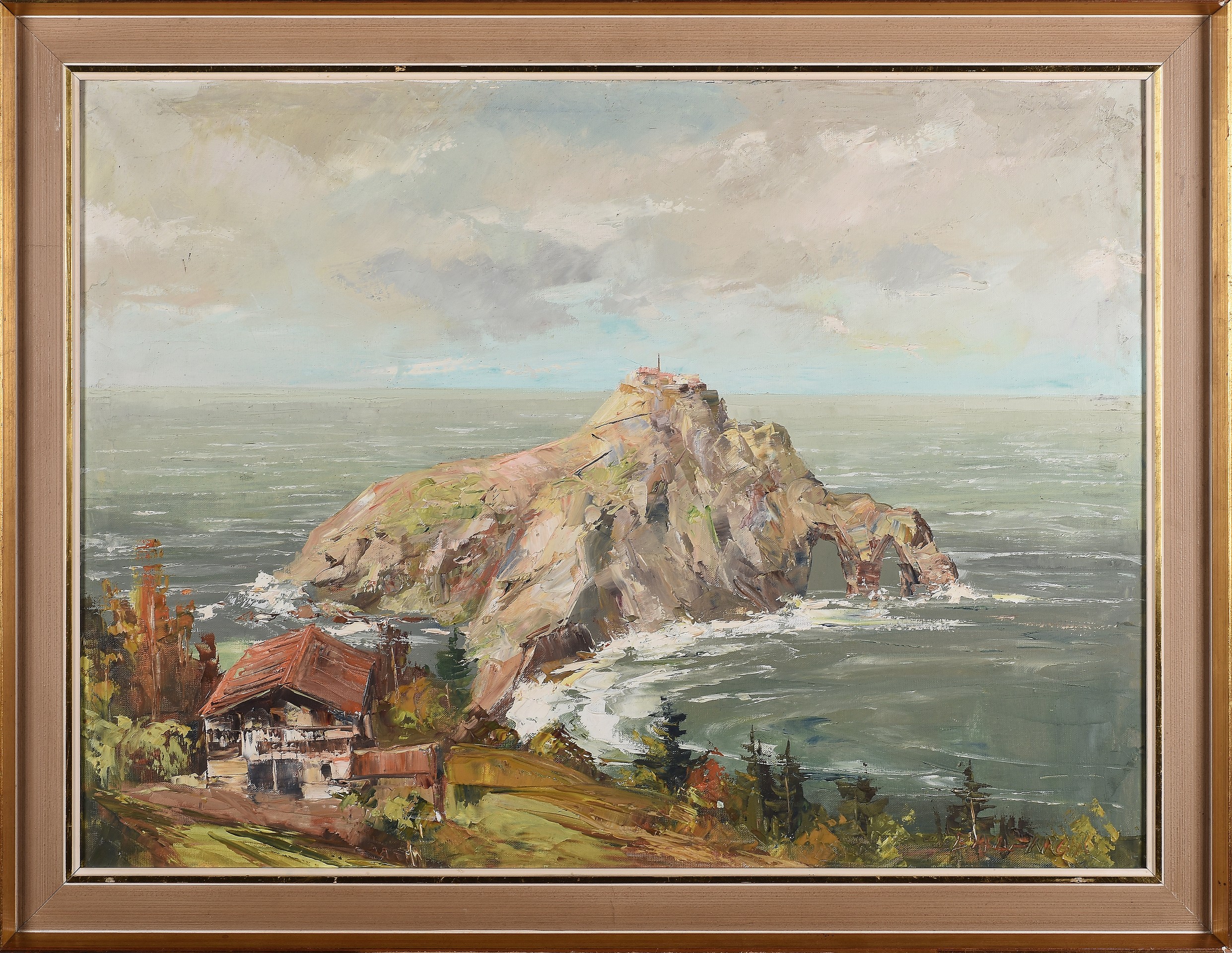 JUAN BENITO OLIVARES BALENCIAGA(Bilbao, 1909)"San Juan de Gaztelugatxe"Óleo sobre lienzo59 x 80 cm