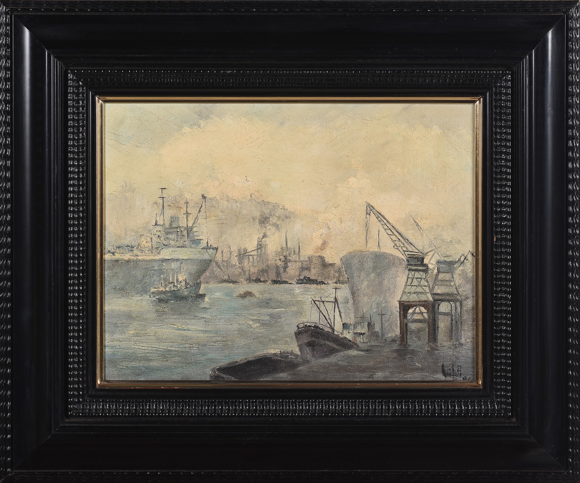 ESCUELA VASCA(S. XX)"Vista del puerto de Bilbao. Altos Hornos"Óleo sobre lienzo26 x 35 cm