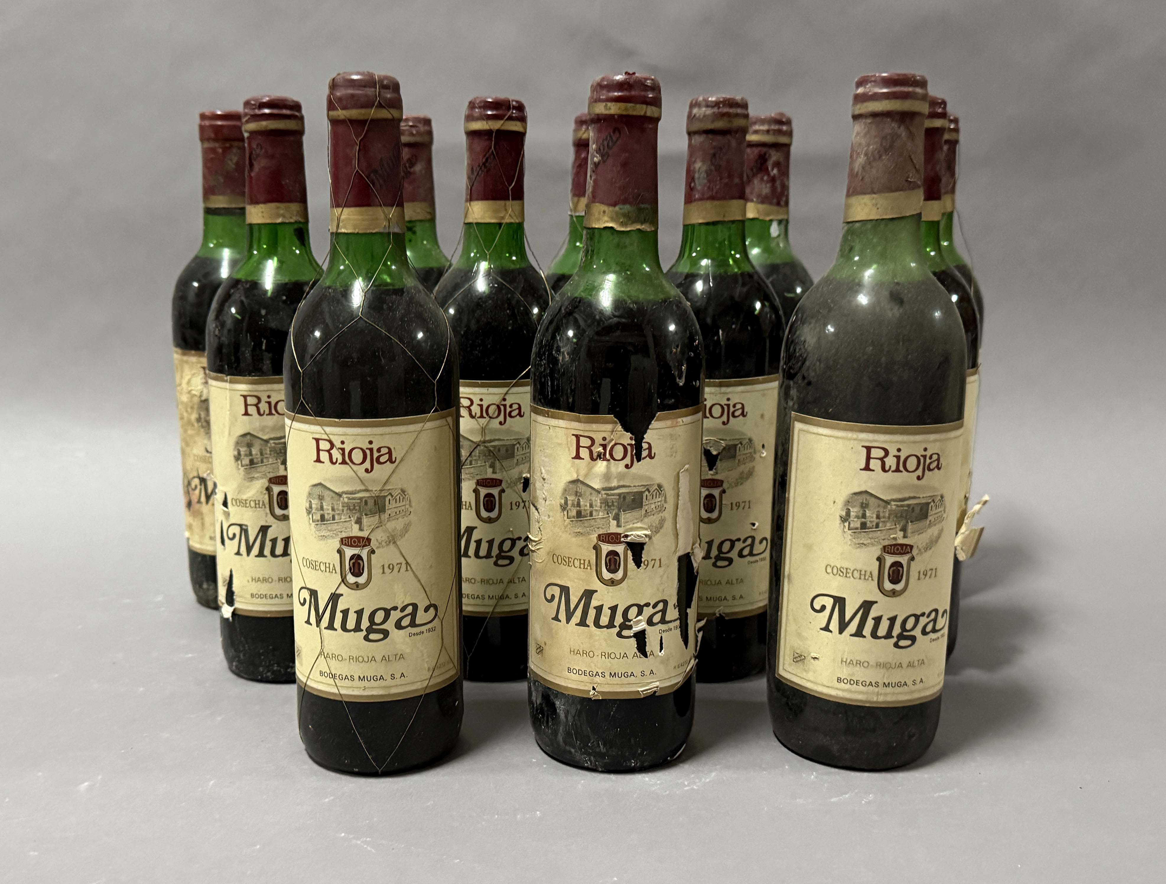 Lote compuesto por 12 botellas de vino Bodegas MUGA crianza de 1971. Haro La Rioja