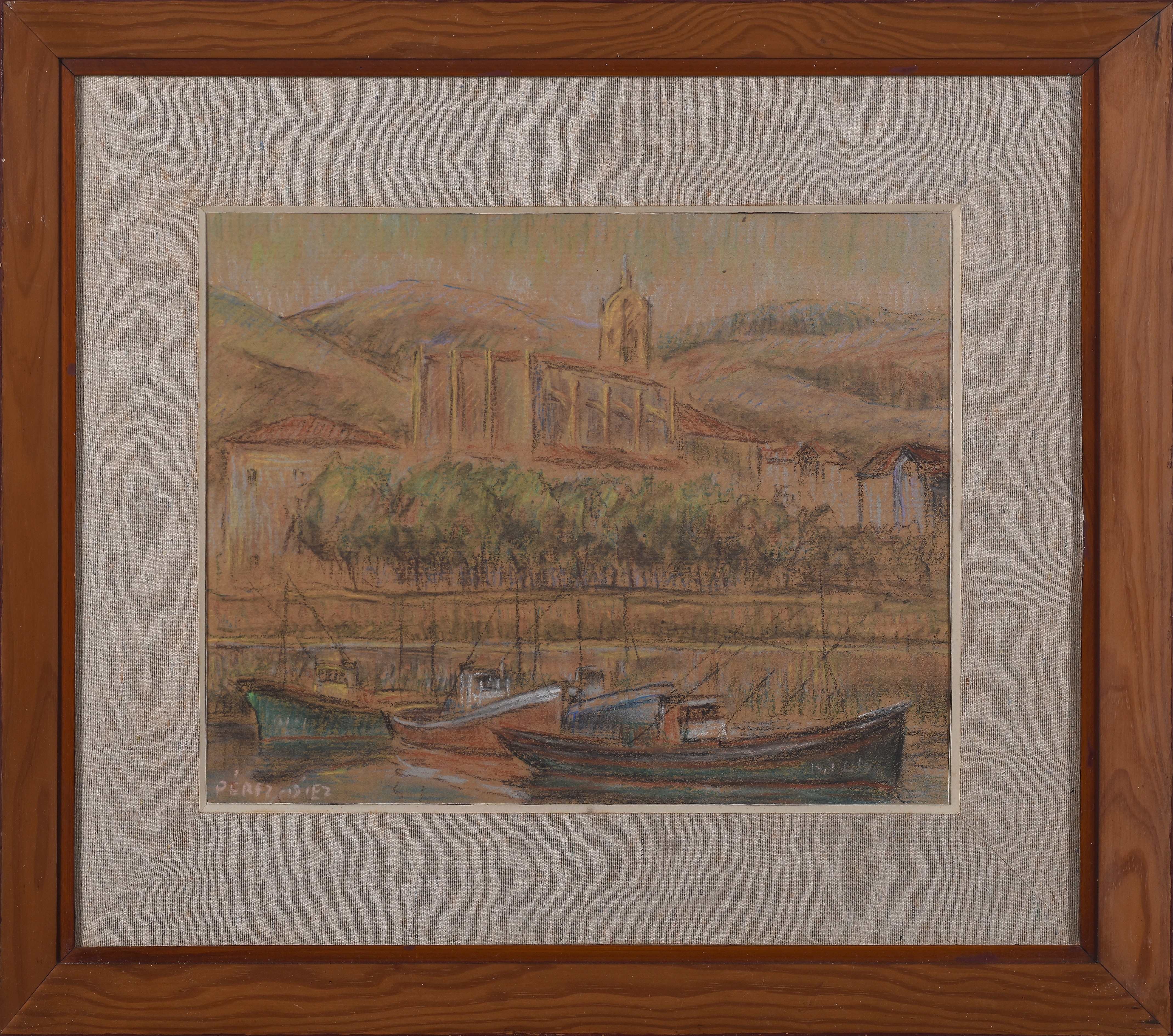 JOSÉ LUIS PÉREZ DÍEZ(Bilbao, 1931 - 1992)"Vista del Puerto de Orio"Pastel sobre papel27 x 35 cm