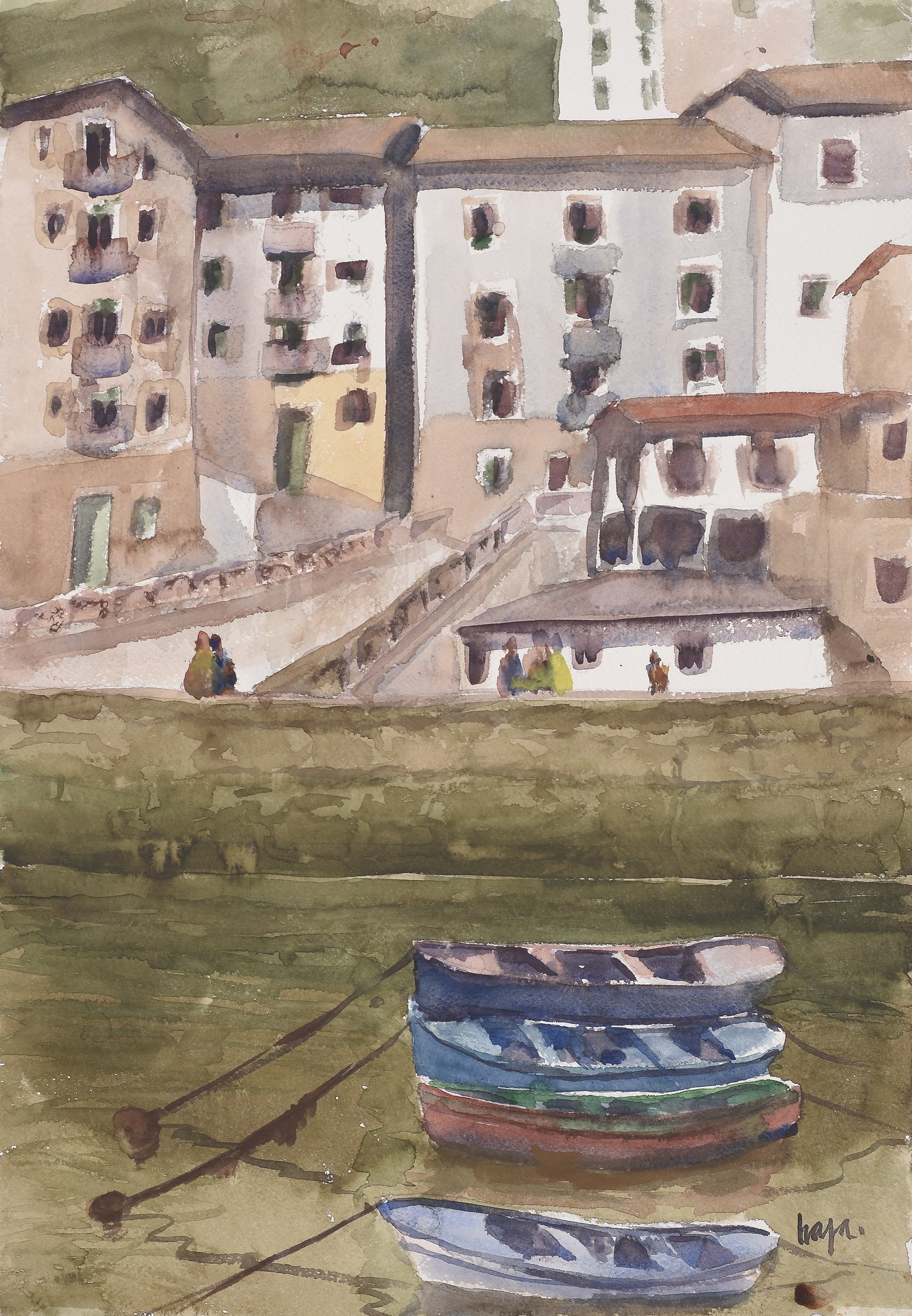 JAVIER LASA SANTILLÁN(Getxo, 1937)"Paisaje con barco"Acuarela sobre papel56 x 37 cm