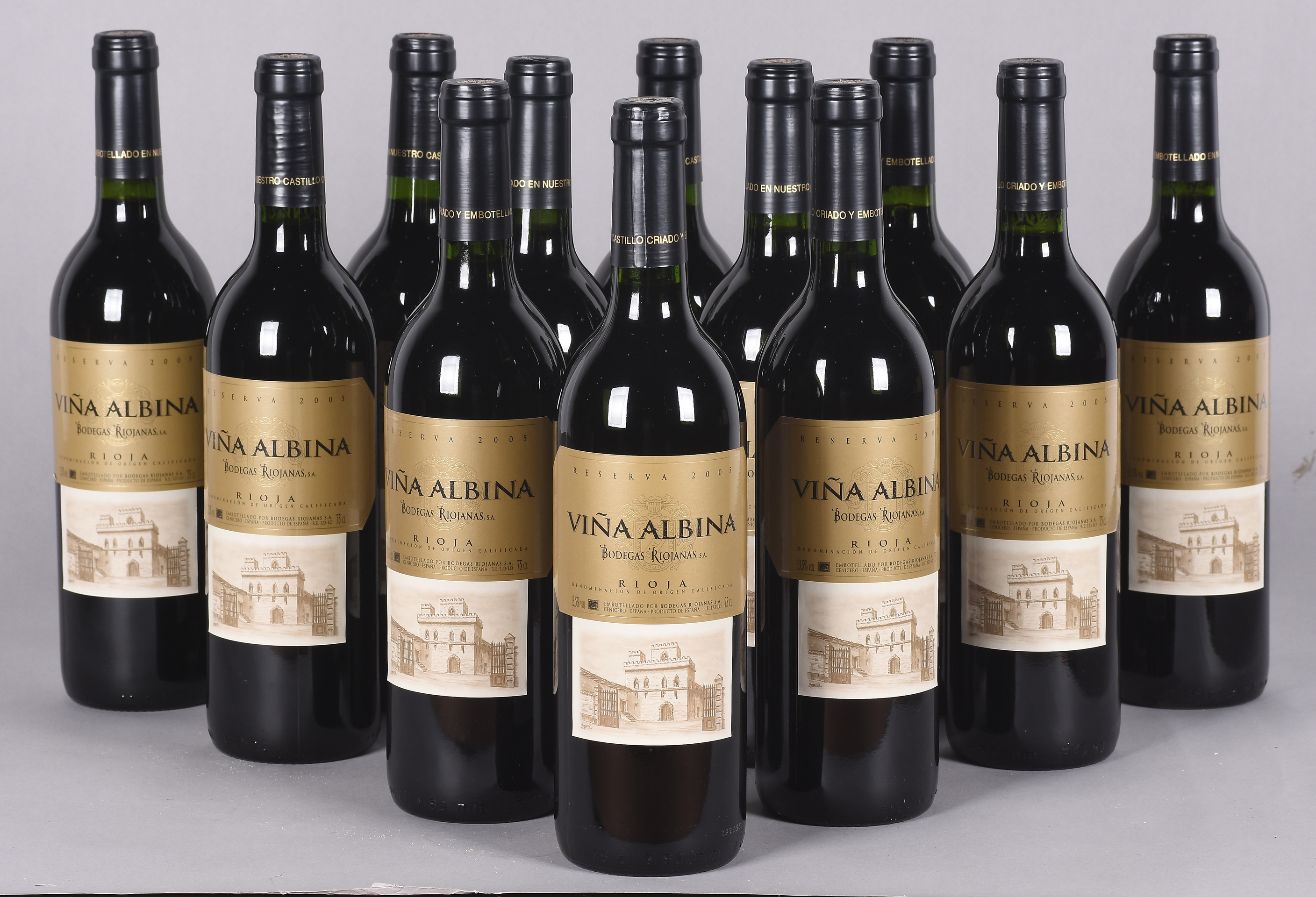 Lote compuesto por 12 botellas de vino de la Bodega BODEGAS RIOJANAS. VIÑA ALBINA Reserva de 2005. Cenicero, La Rioja.