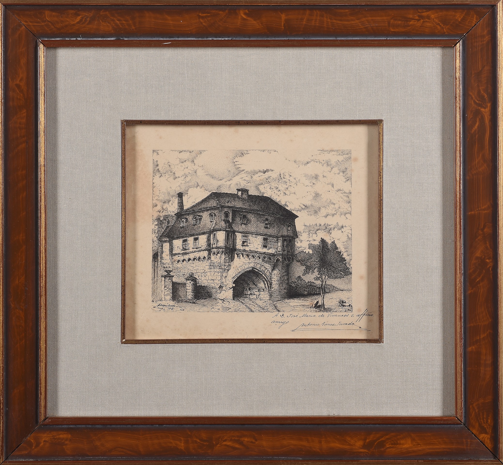 ANTONIO GÓMEZ JURADO(España, Fin S. XIX-Principios S. XX)"La puerta vieja de Andernach"Tinta sobre papel14 x 18 cm