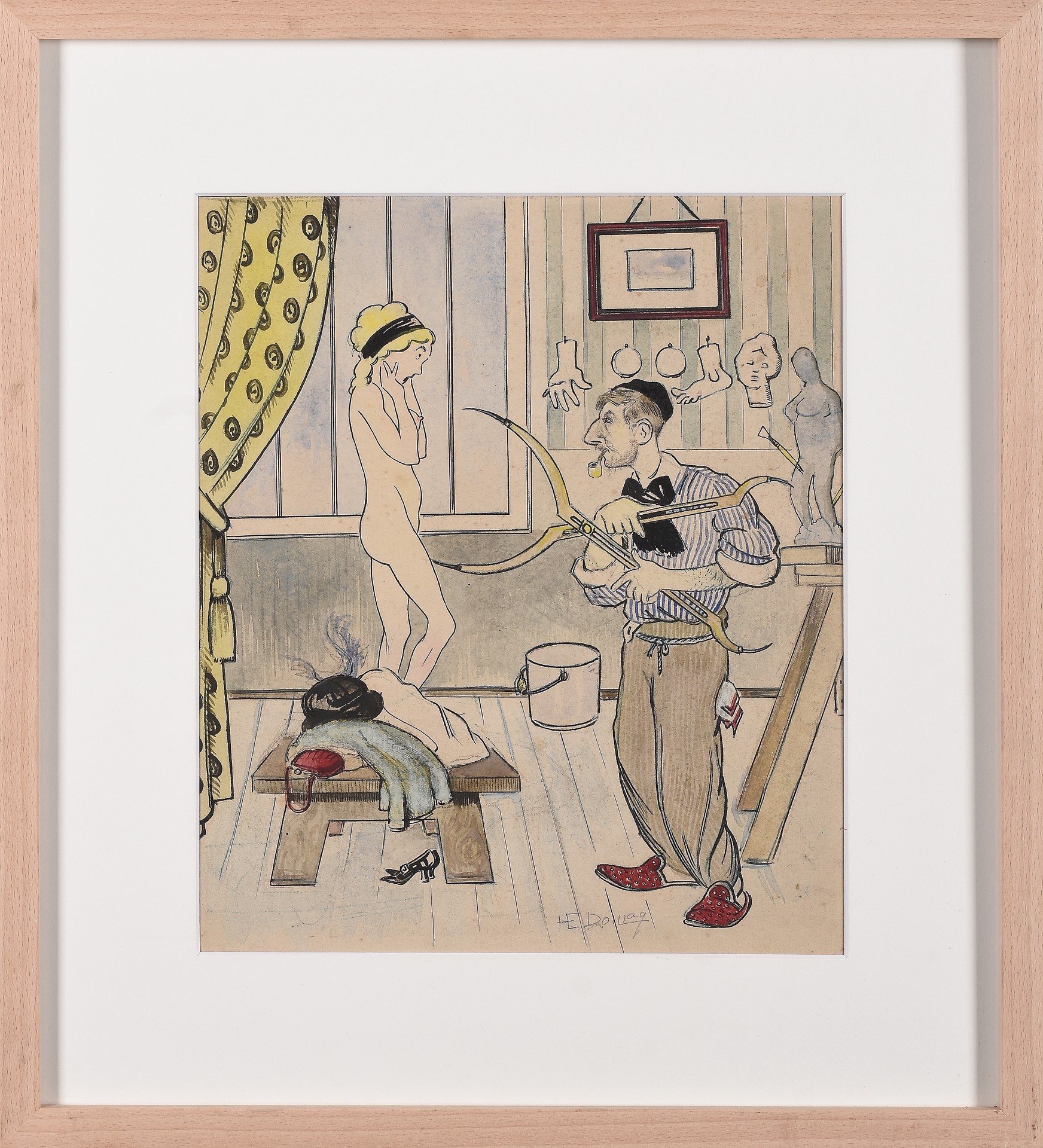 ESCUELA FRANCESA(Principios S. XX)"El pintor y la modelo"Técnica mixta sobre papel27 x 22 cm