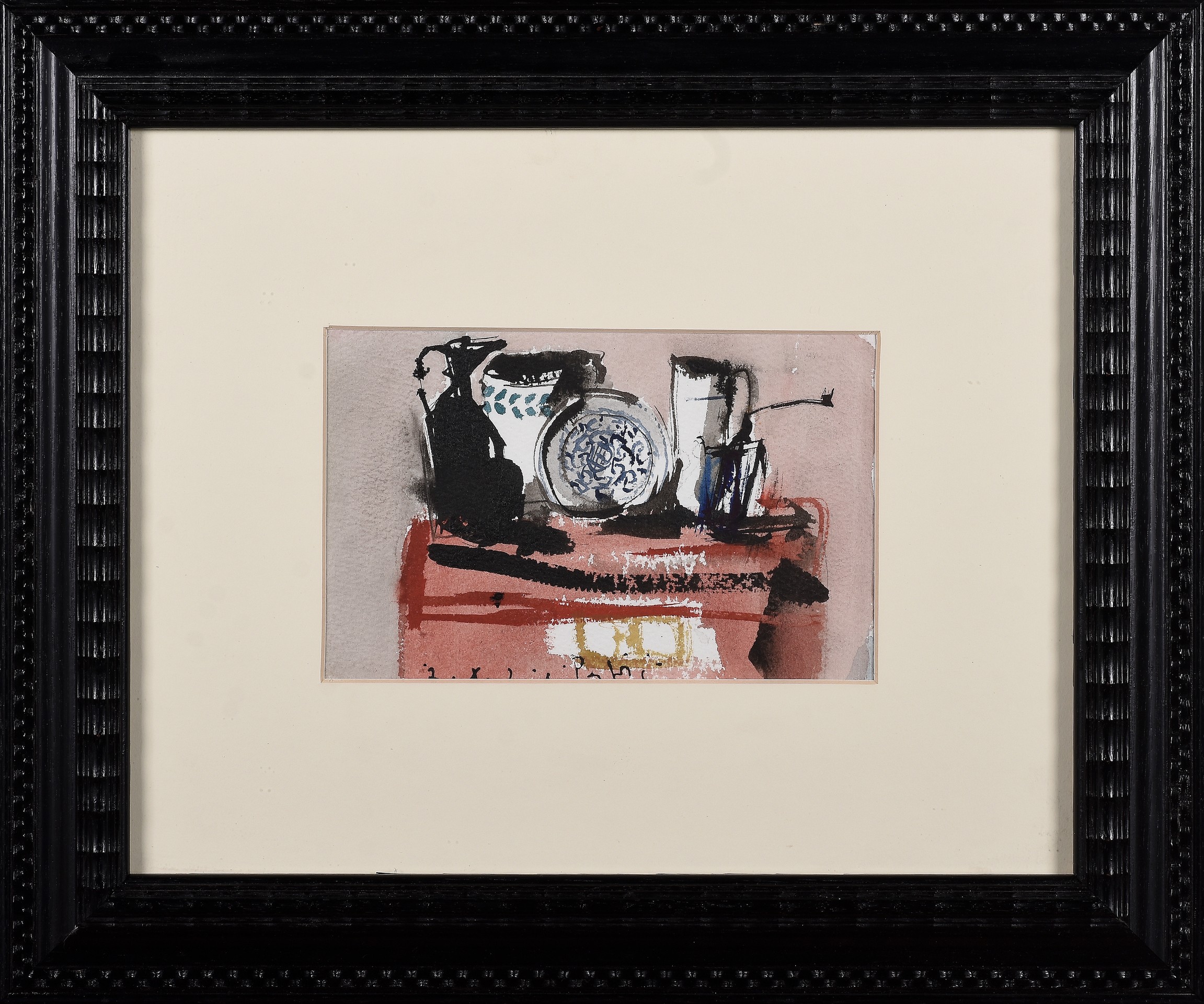 PATRICIO HIDALGO MORÁN(Ibiza, Islas Baleares, 1979)"Bodegón con objetos"Acuarela sobre papel12 x 18 cm