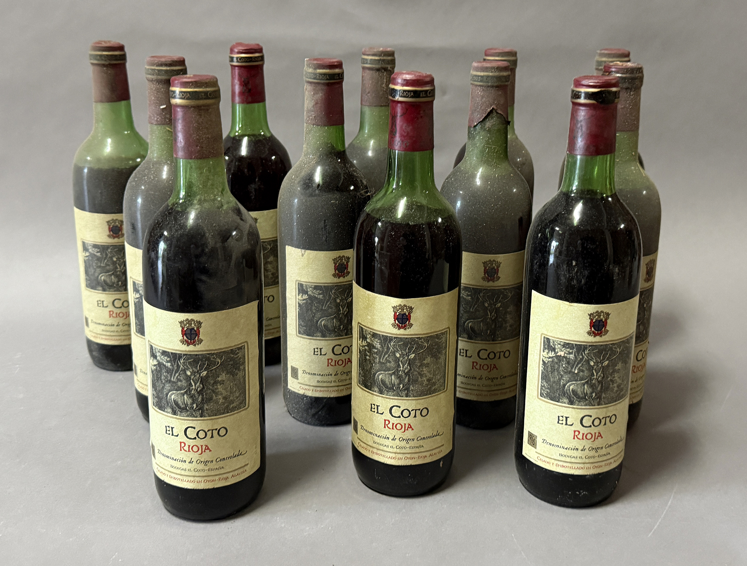 Lote compuesto por 12 botellas de vino tinto Bodegas el Coto crianza Años 70-80