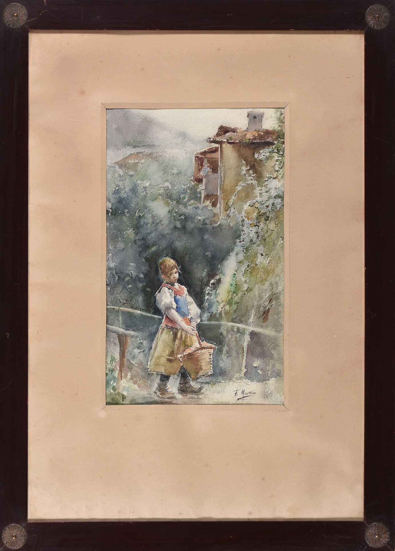 ESCUELA ESPAÑOLA(S. XIX)"Niña con cesta"Acuarela sobre papel36 x 22 cm
