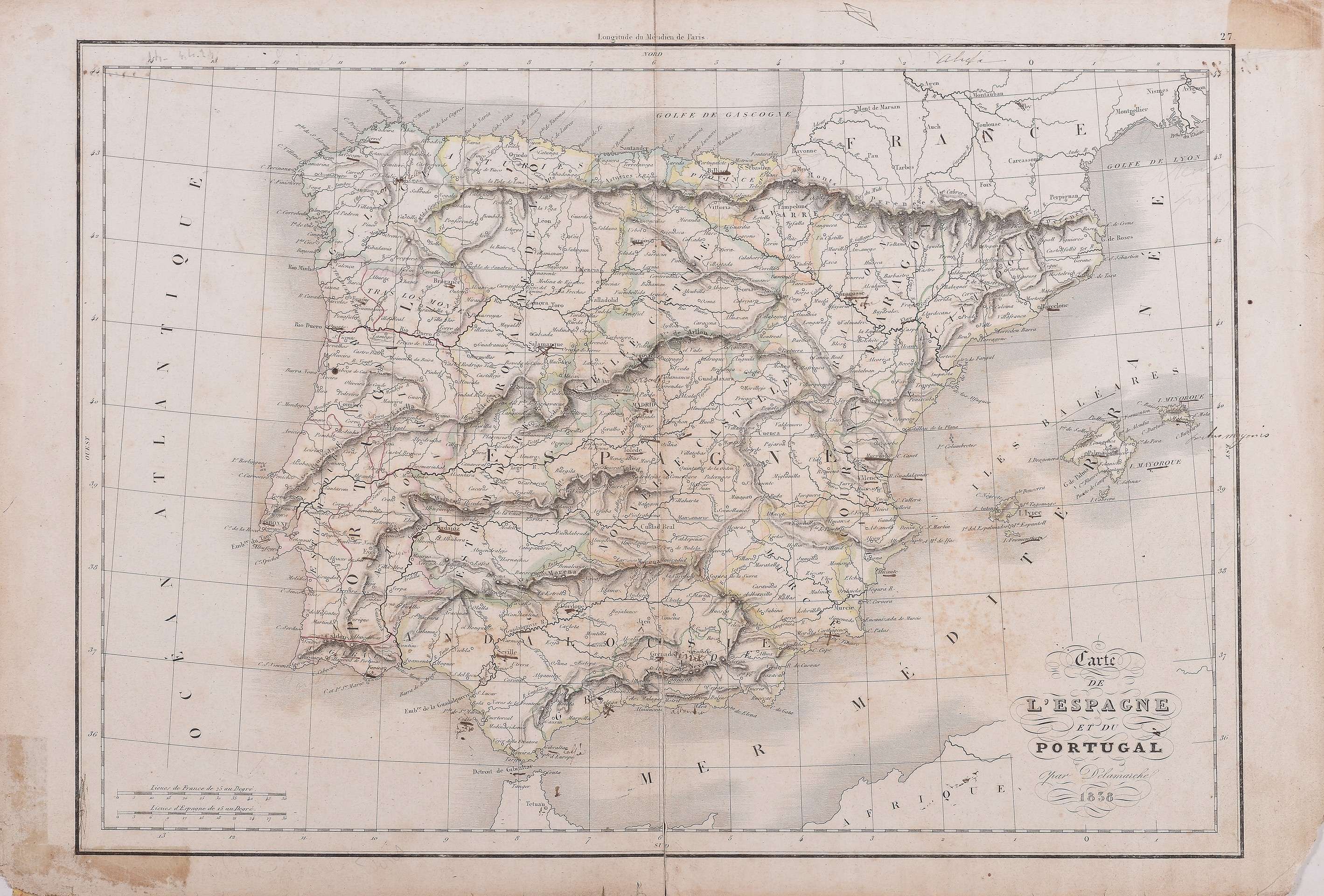 GEORGES FRANÇOIS DELAMARCHE(Francia, 1740-1817)"Carte de l'Espagne et du Portugal par Delamarche 1838"Litografía42 x 47 cm