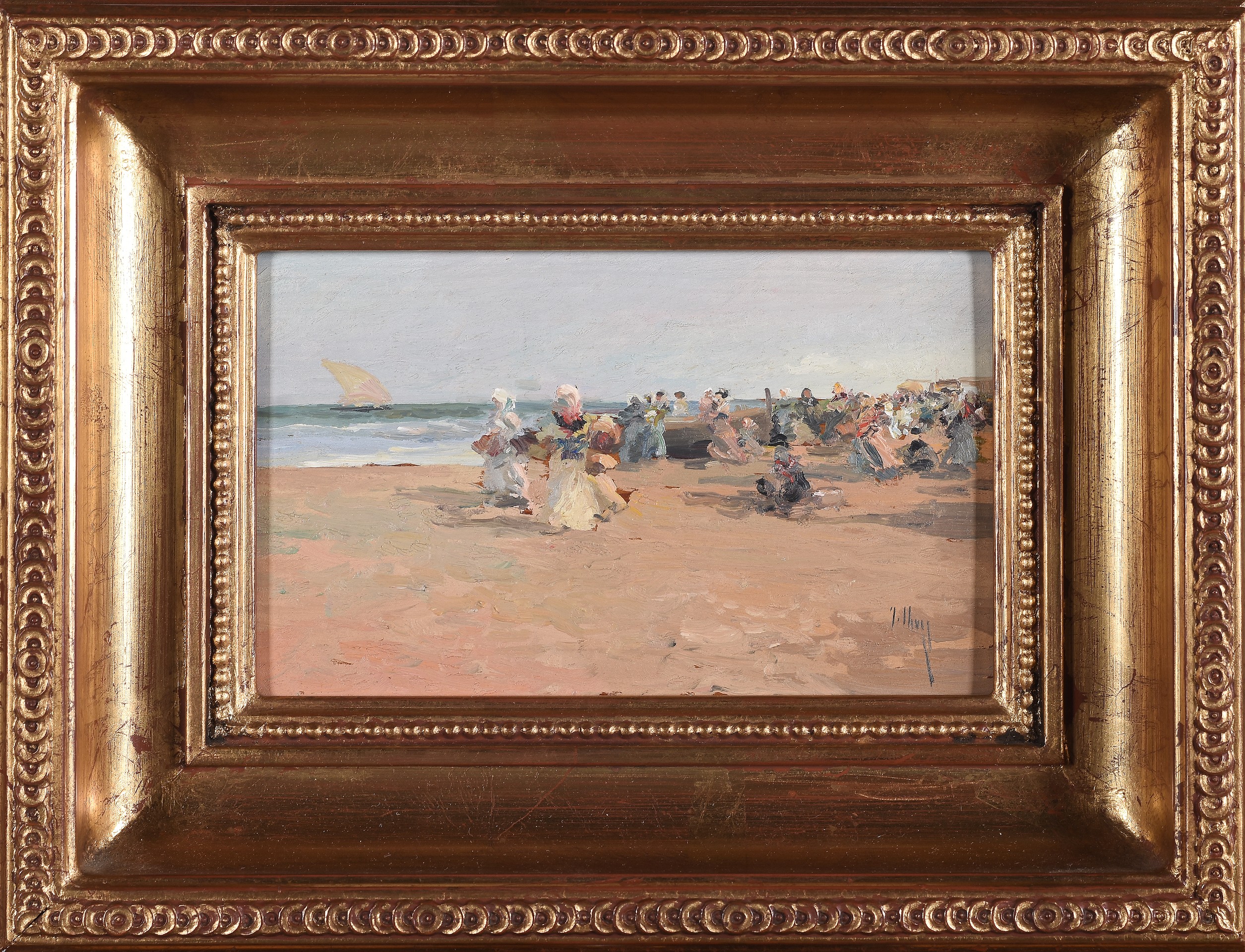 JOSE LUIS CHECA GALINDO(Valencia, 1950)"Personajes en la playa"Óleo sobre lienzo11 x 18 cm