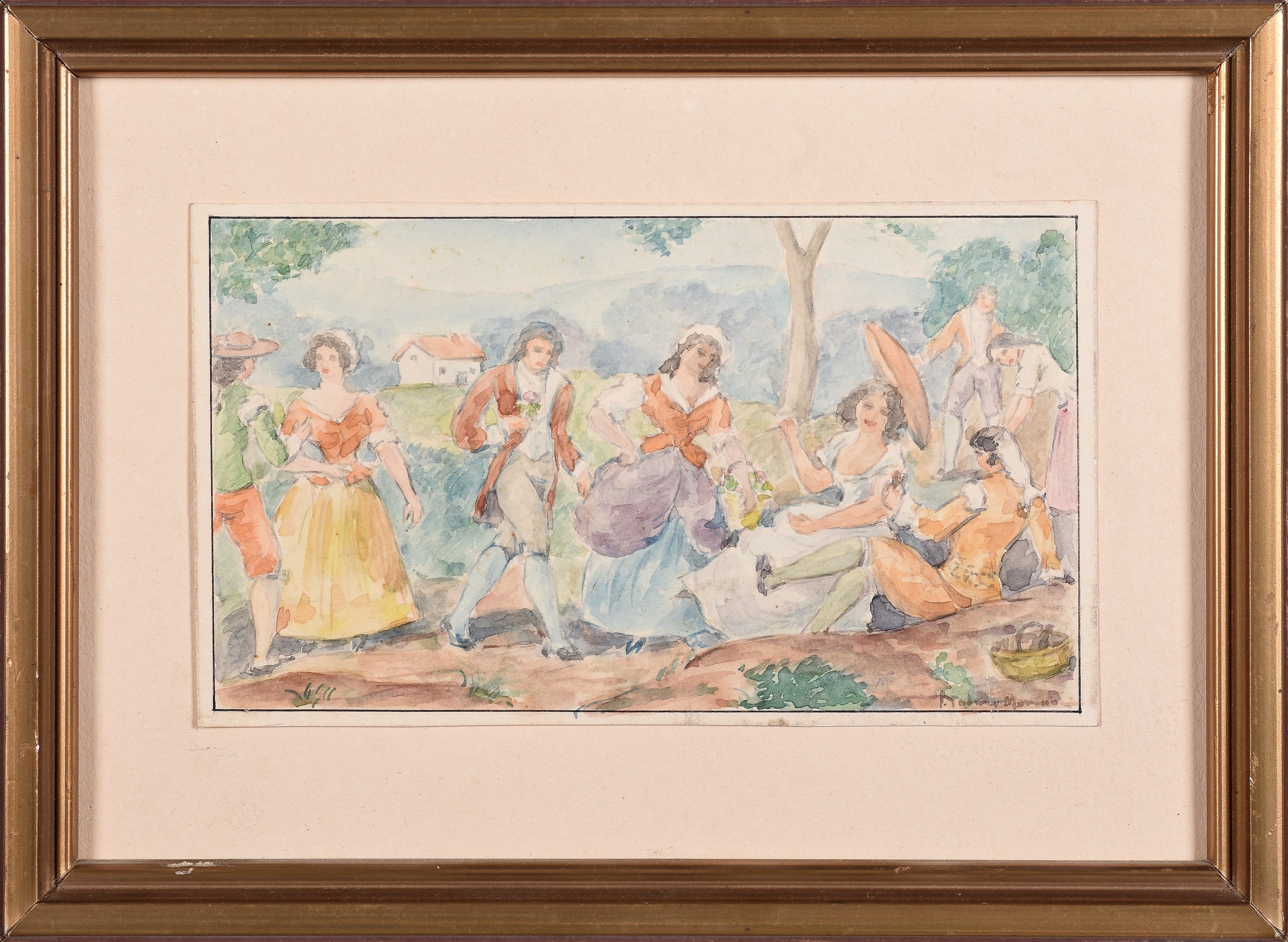 ESCUELA ESPAÑOLA(Principios S. XX)"Escena galante"Acuarela sobre papel8 x 13 cm