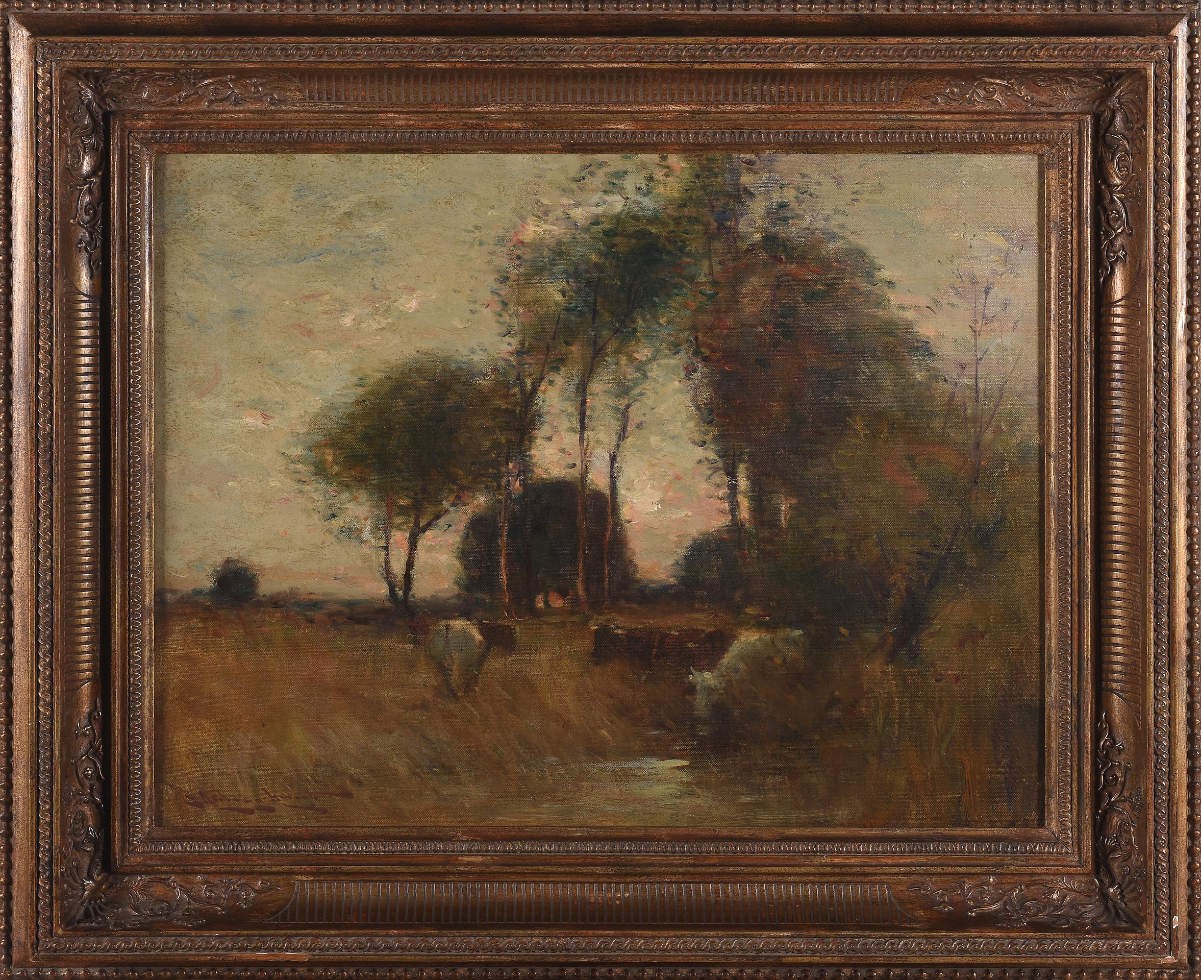 ESCUELA ESPAÑOLA(S. XIX)"Paisaje con vacas"Óleo sobre lienzo43 x 56 cm