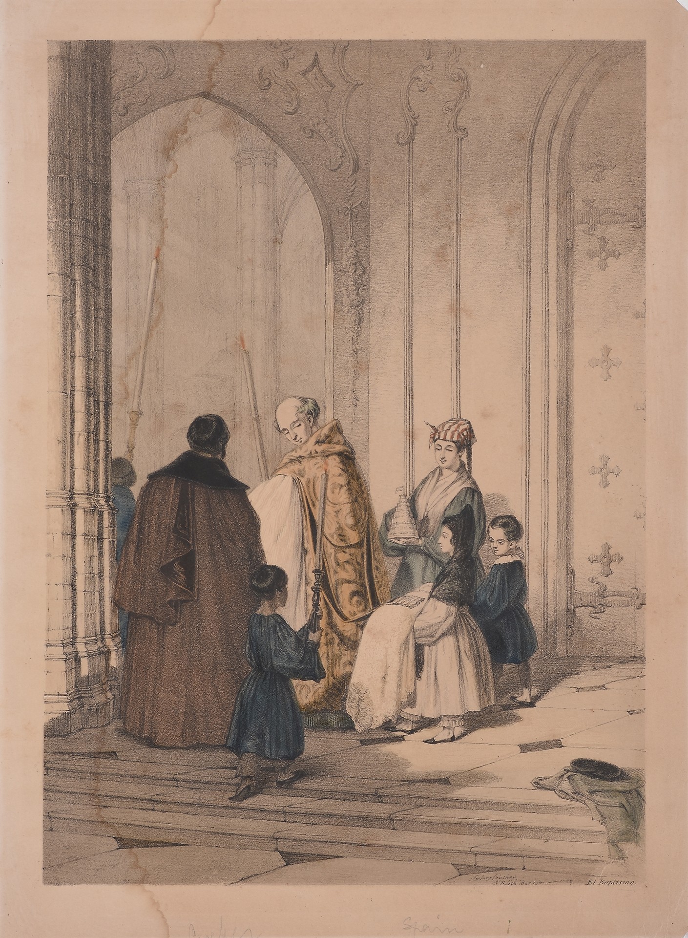 SYDNEY CROCKER Y BLIGH BARKER(Reino Unido, S. XIX)"El baptismo"Litografía coloreada42 x 31 cm