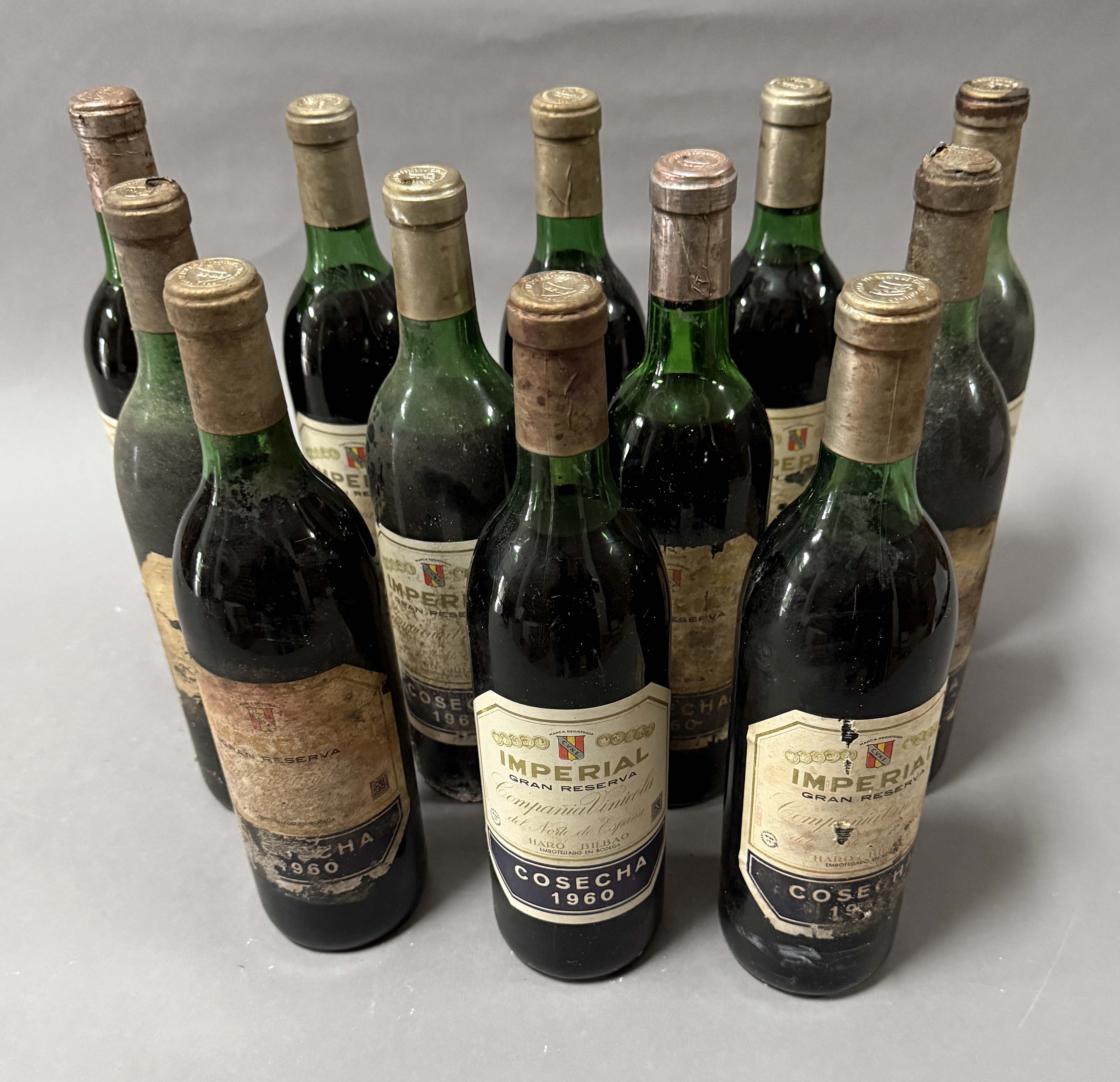 Lote compuesto por 12 botellas de Bodegas CVNE Imperial gran reserva año 1960. Haro La Rioja