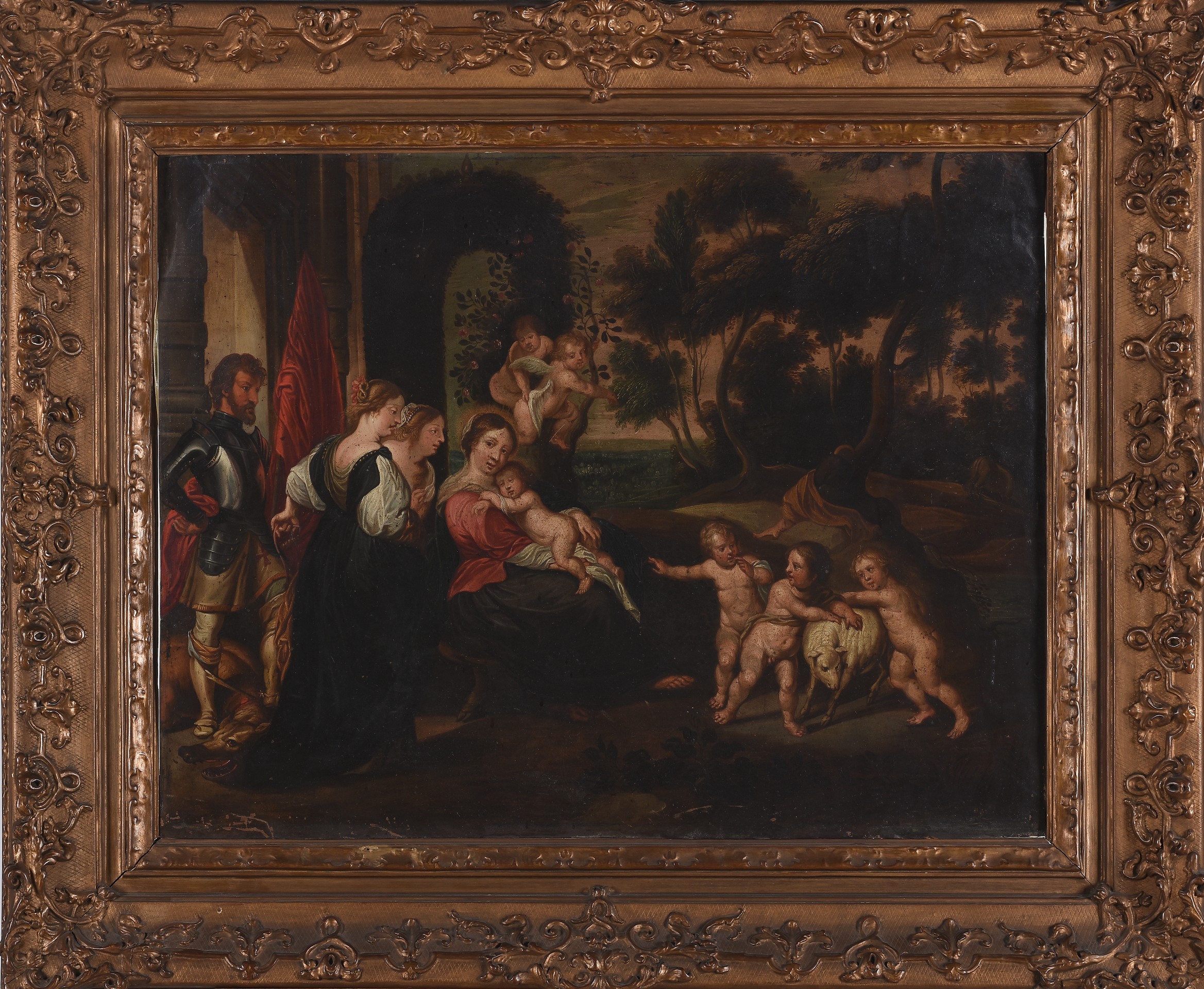 ESCUELA FLAMENCA(S. XVII)Siguiendo a Peter Paul Rubens “La Virgen del Jardín de las Rosas”Óleo sobre cobre56 x 74 cm