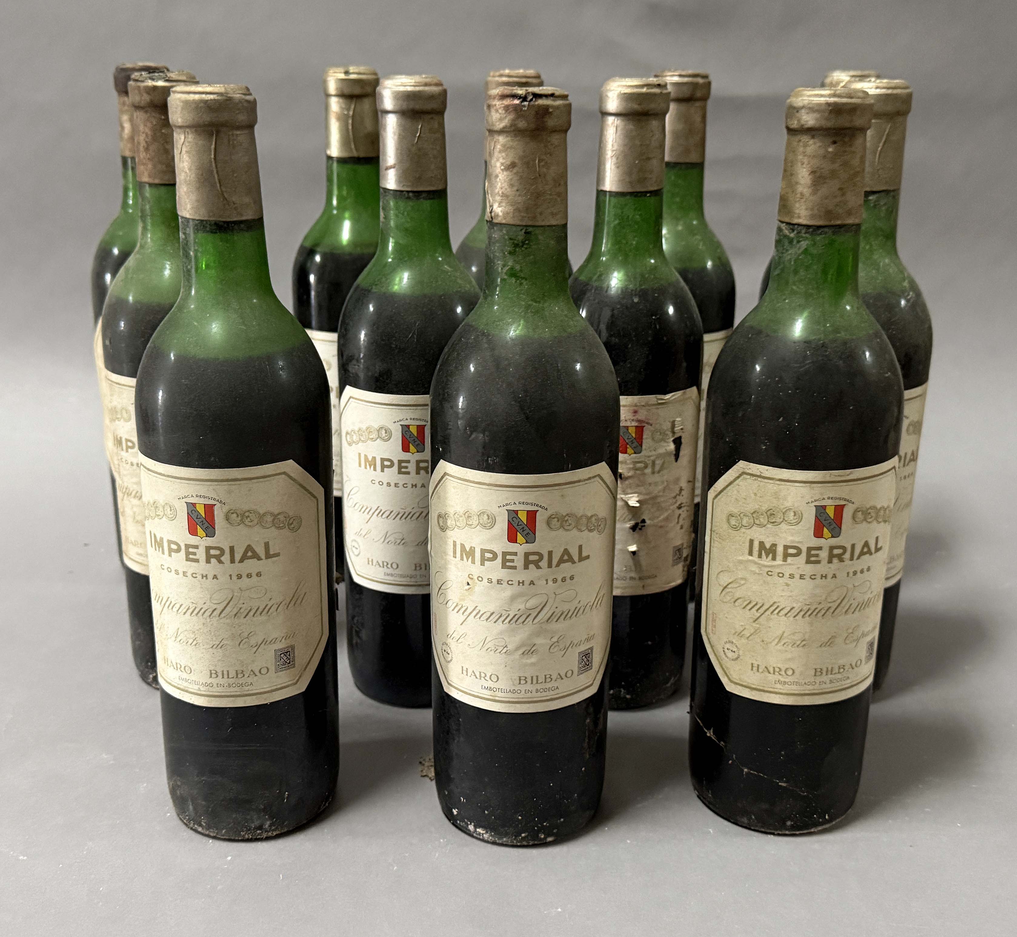 Lote compuesto por 12 botellas de Bodegas CVNE Imperial crianza año 1966. Haro La Rioja