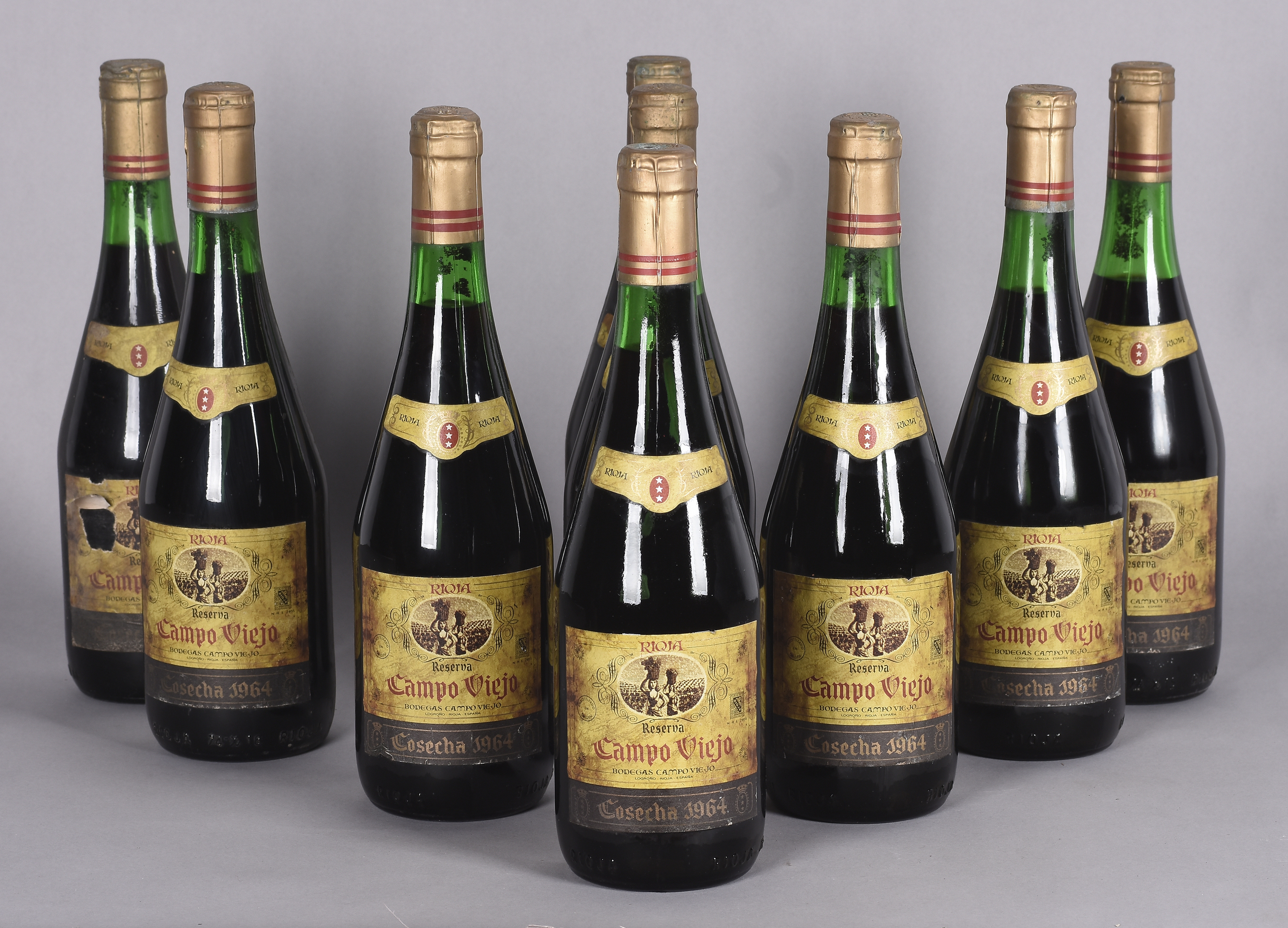 Lote compuesto por 9 botellas Bodegas Campoviejo reserva 1964. Logroño La Rioja