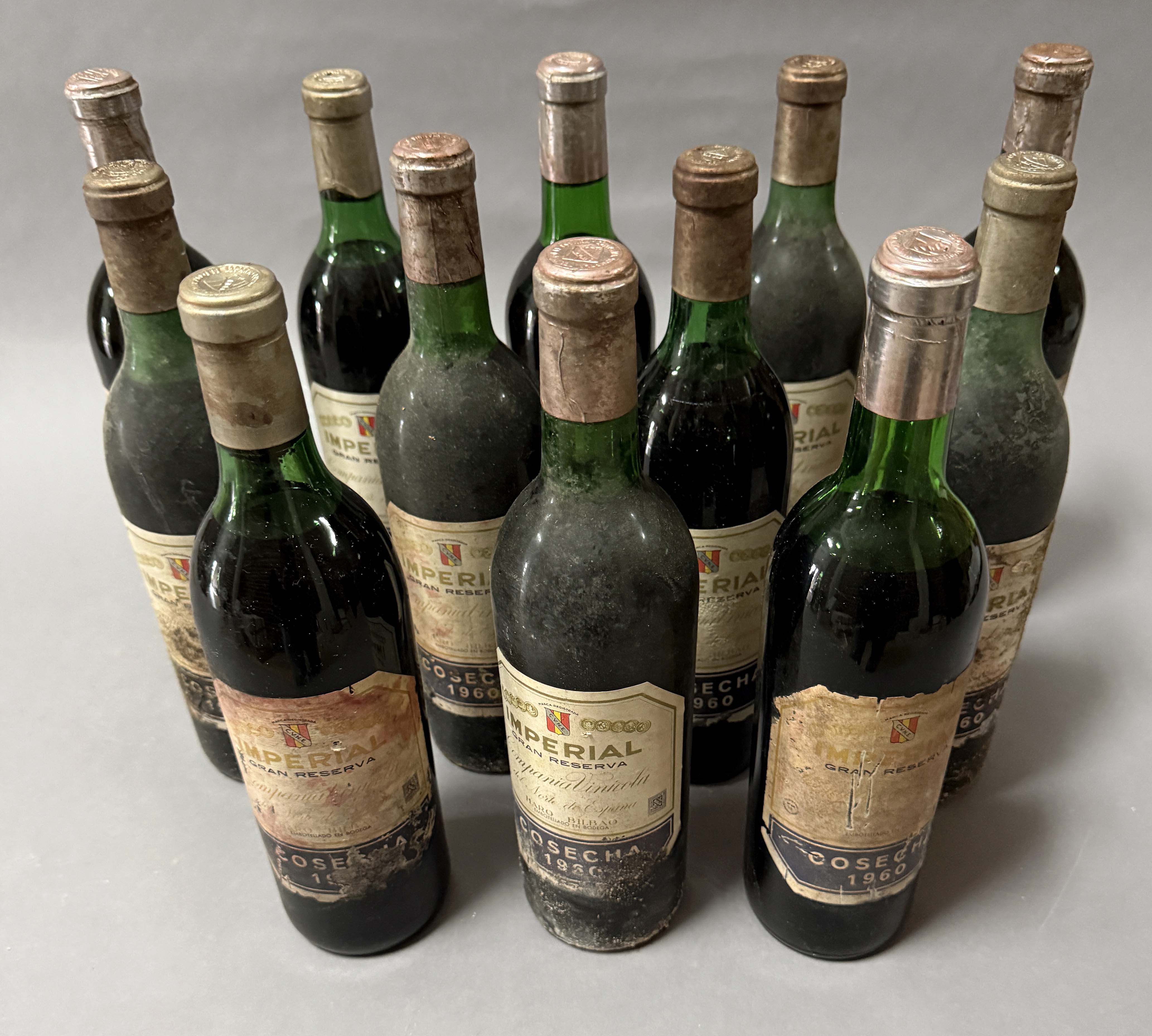 Lote compuesto por 12 botellas de Bodegas CVNE Imperial gran reserva año 1960. Haro La Rioja
