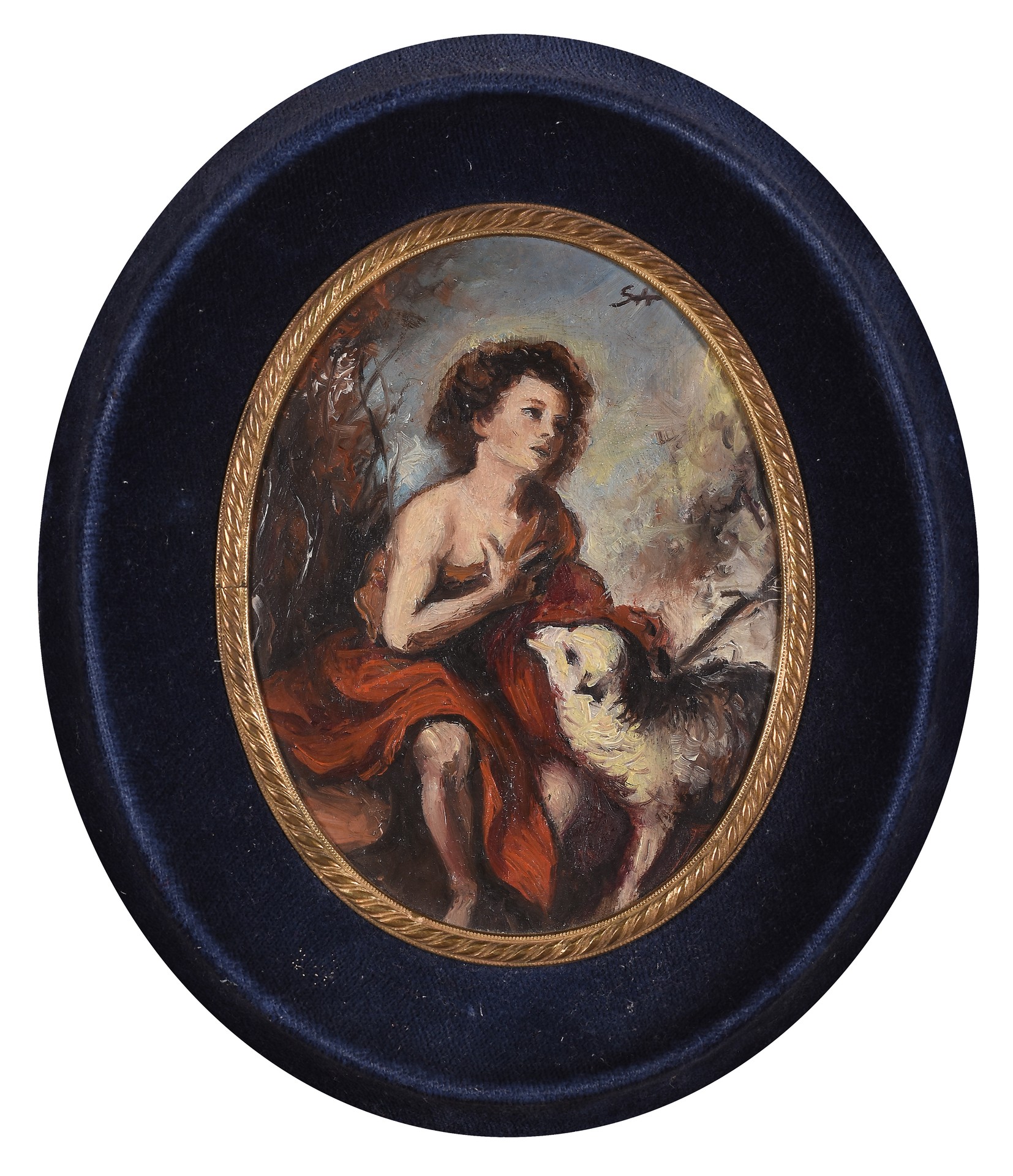 ESCUELA ESPAÑOLA(S. XIX)Siguiendo a Bartolomé Esteban Murillo "San Juan Bautista, niño"Óleo sobre cobre10 x 8 cm