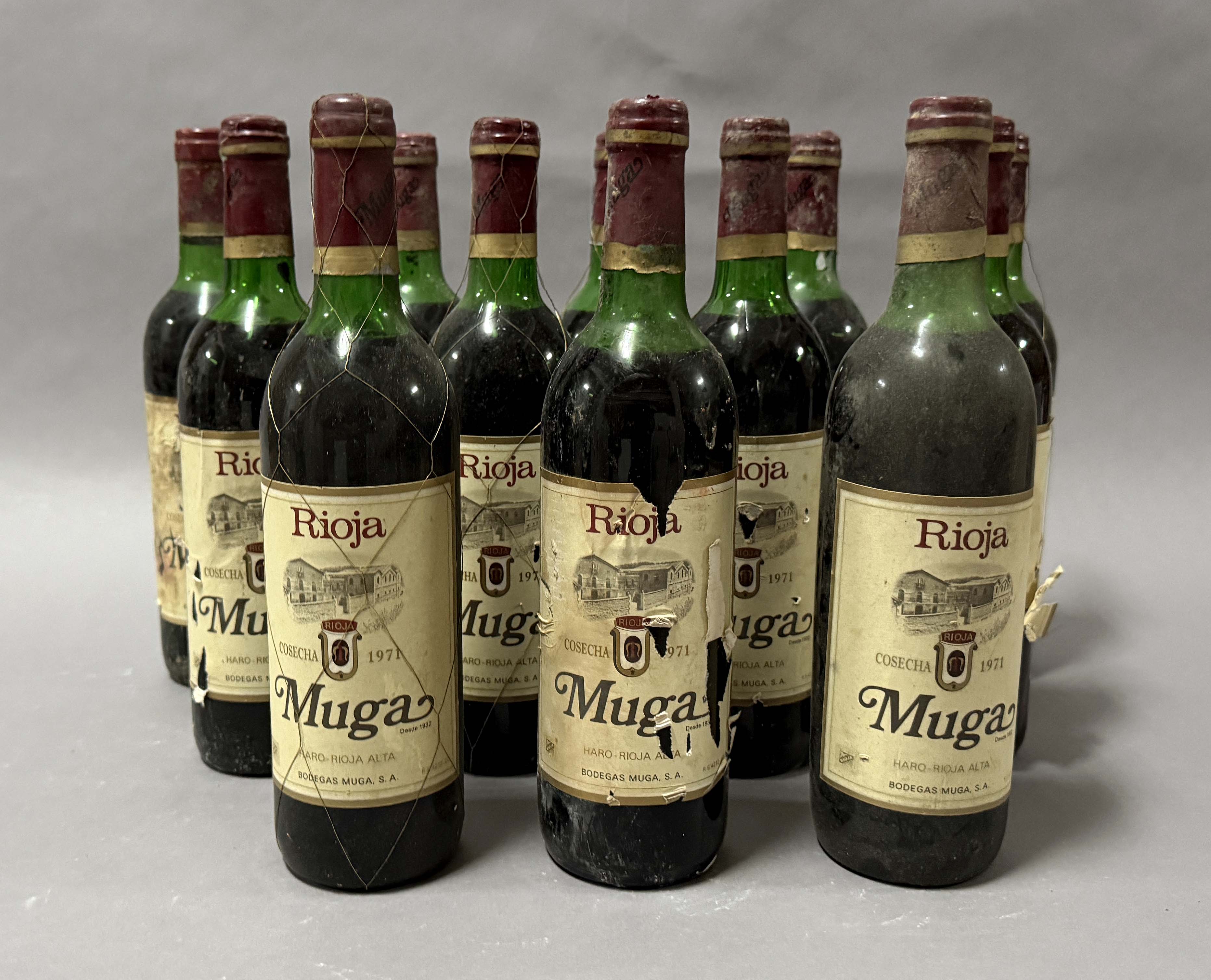 Lote compuesto por 12 botellas de vino Bodegas MUGA crianza de 1971. Haro La Rioja