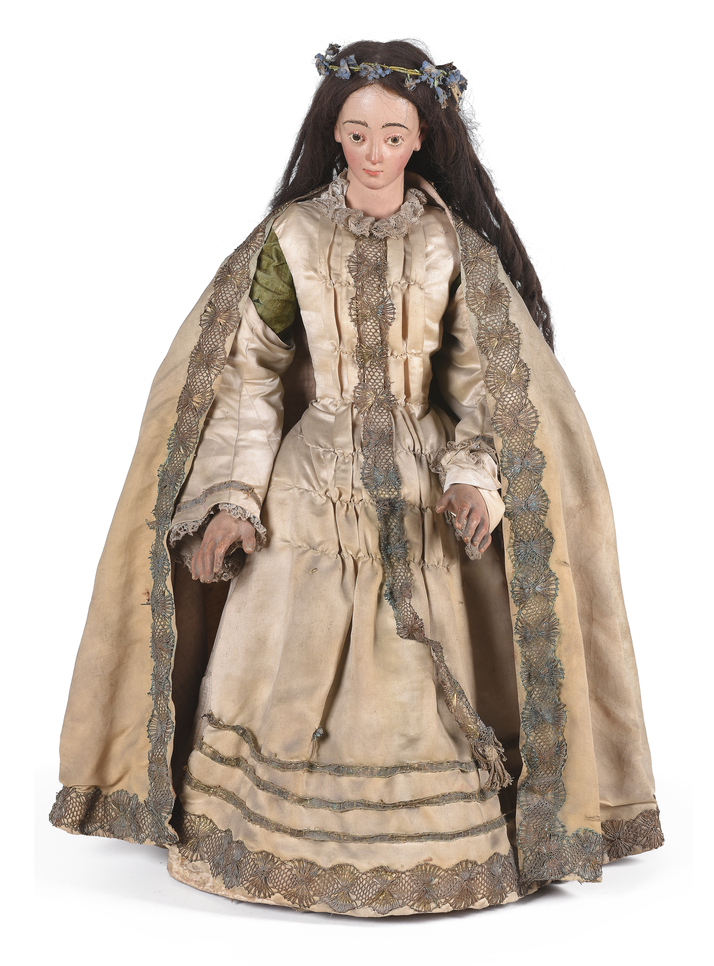 Virgen vestidera de pelo natural realizada en madera policromada.
