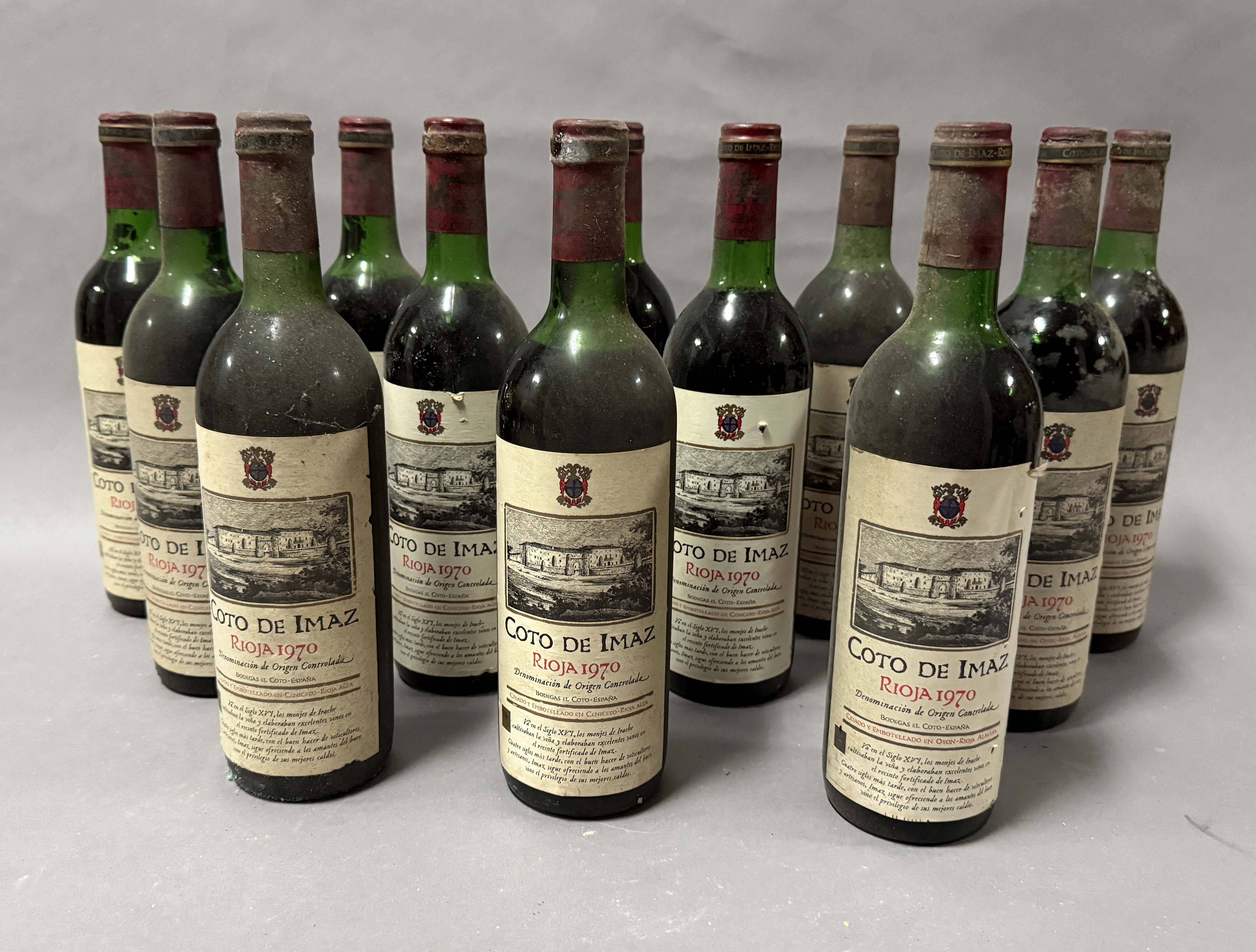 Lote compuesto por 12 botellas de vino tinto Bodegas Coto COTO DE IMAZ Crianza 1970. Cenicero La Rioja