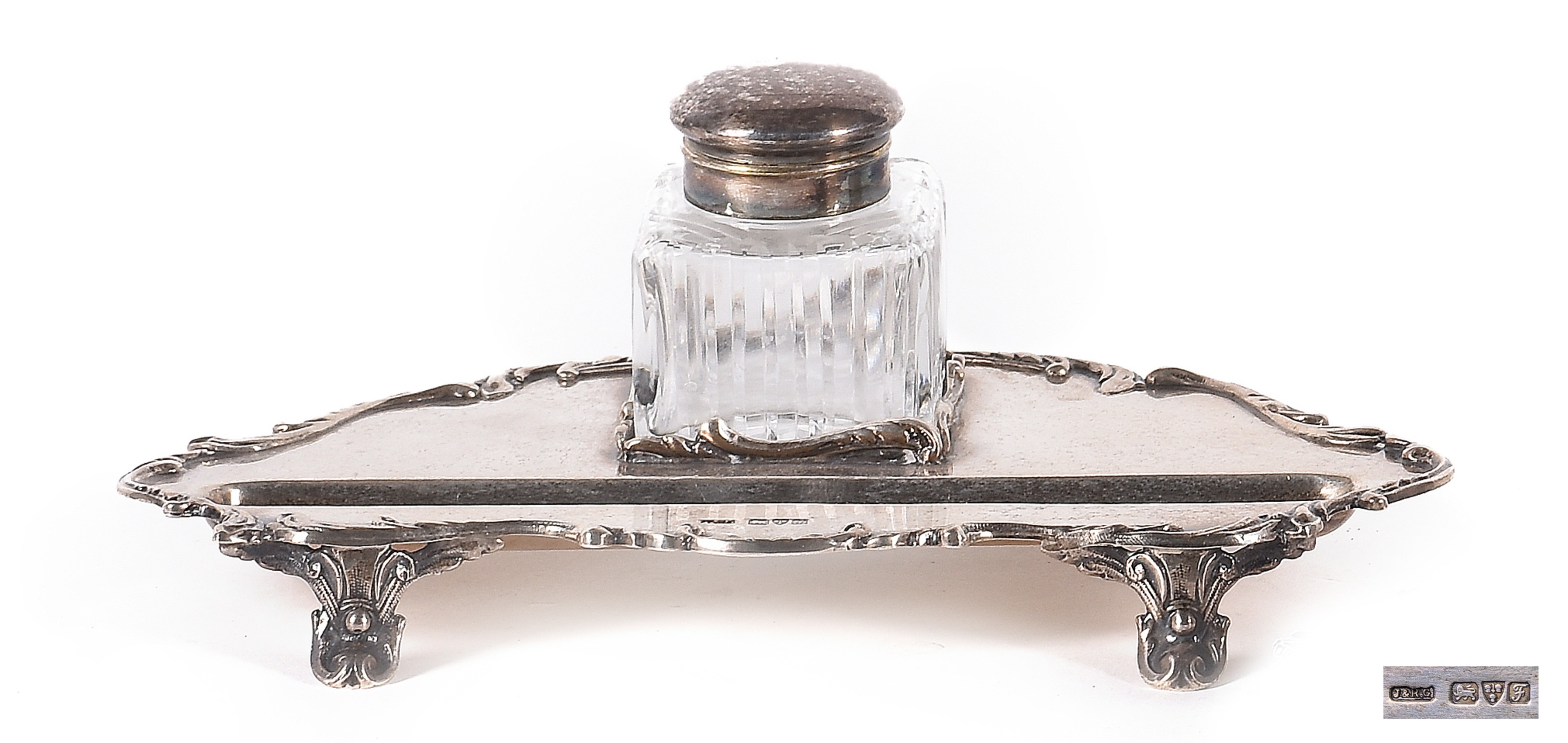 Escribanía realizada en plata con punzones de platero. Inglaterra.