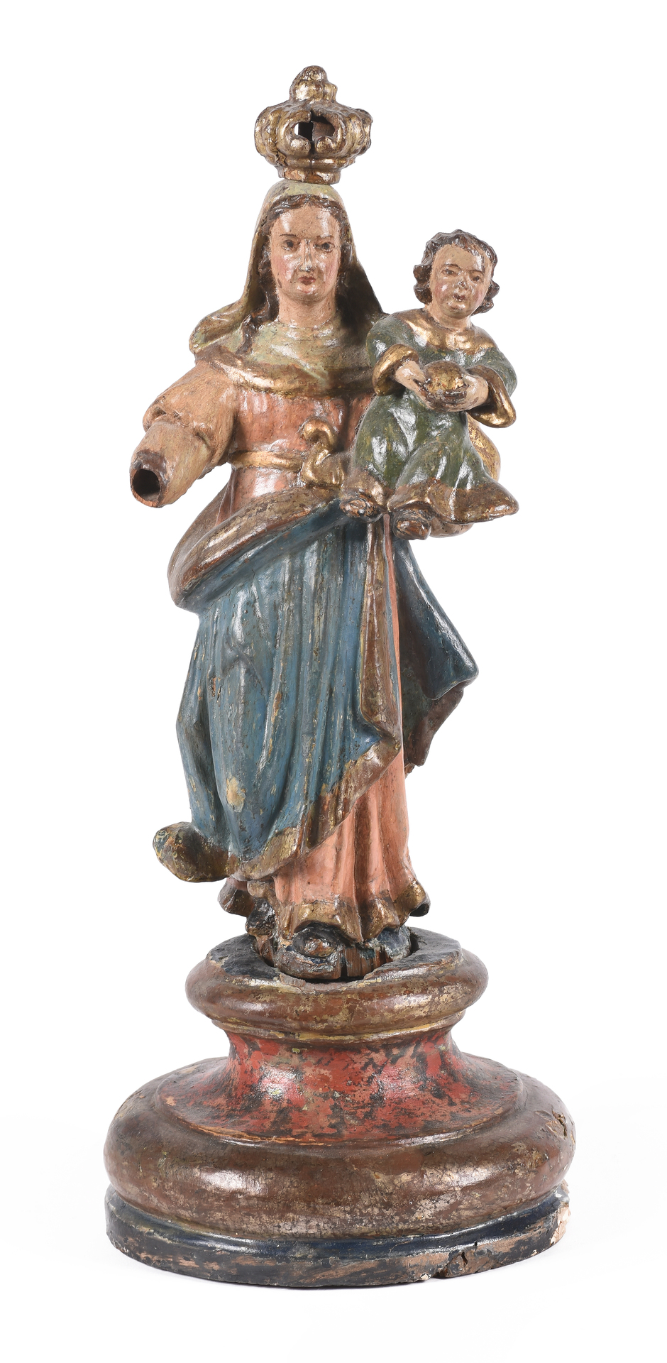 ESCUELA ESPAÑOLA(S. XVIII)"Virgen con el Niño"Madera tallada y policromada39 x 15 x 12 cm