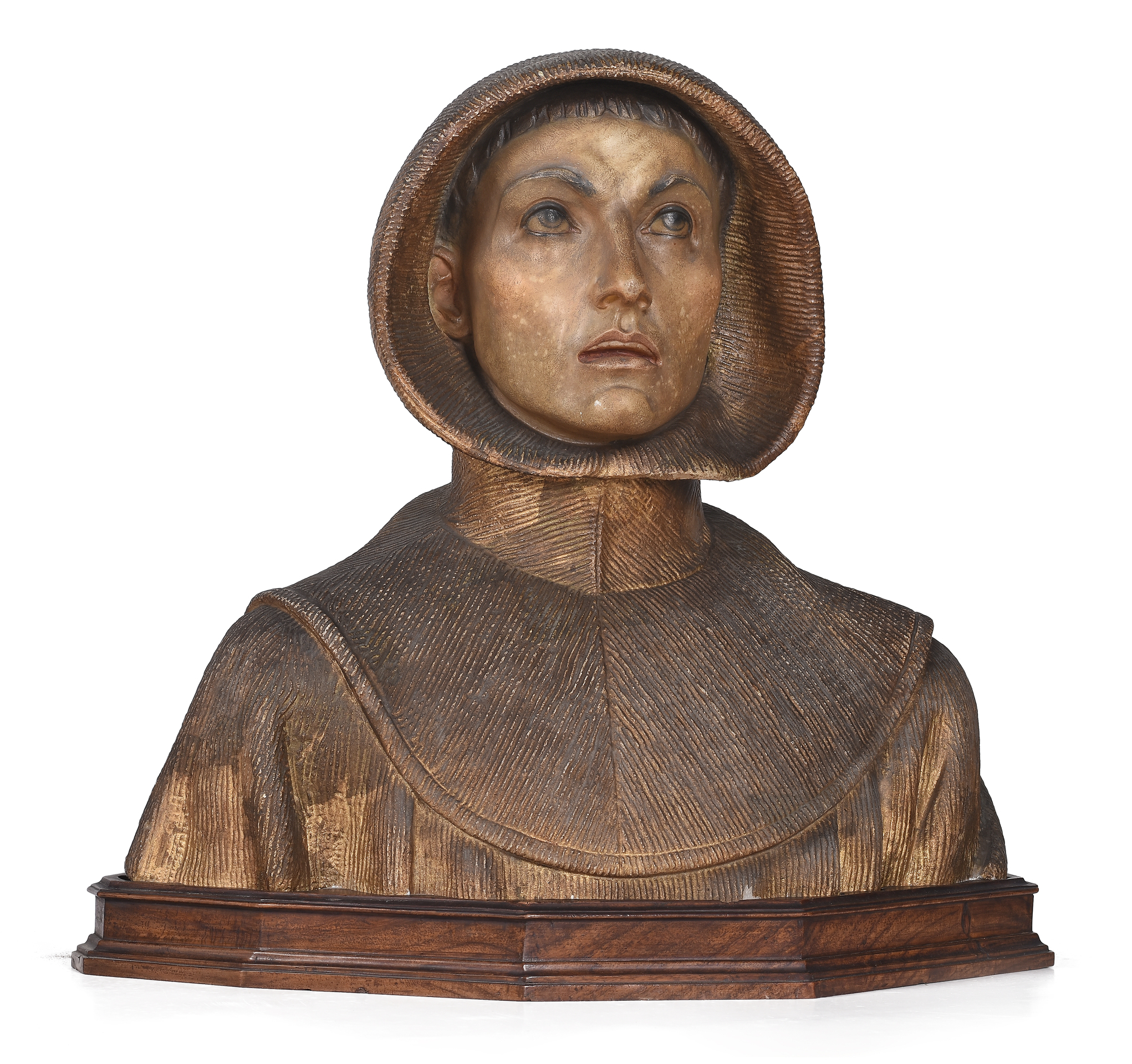 QUINTÍN DE TORRE BERASTEGUI(Bilbao, 1877- 1966)"Busto de monje"Alabastro tallado y policromado.54 x 57 x 33 cm