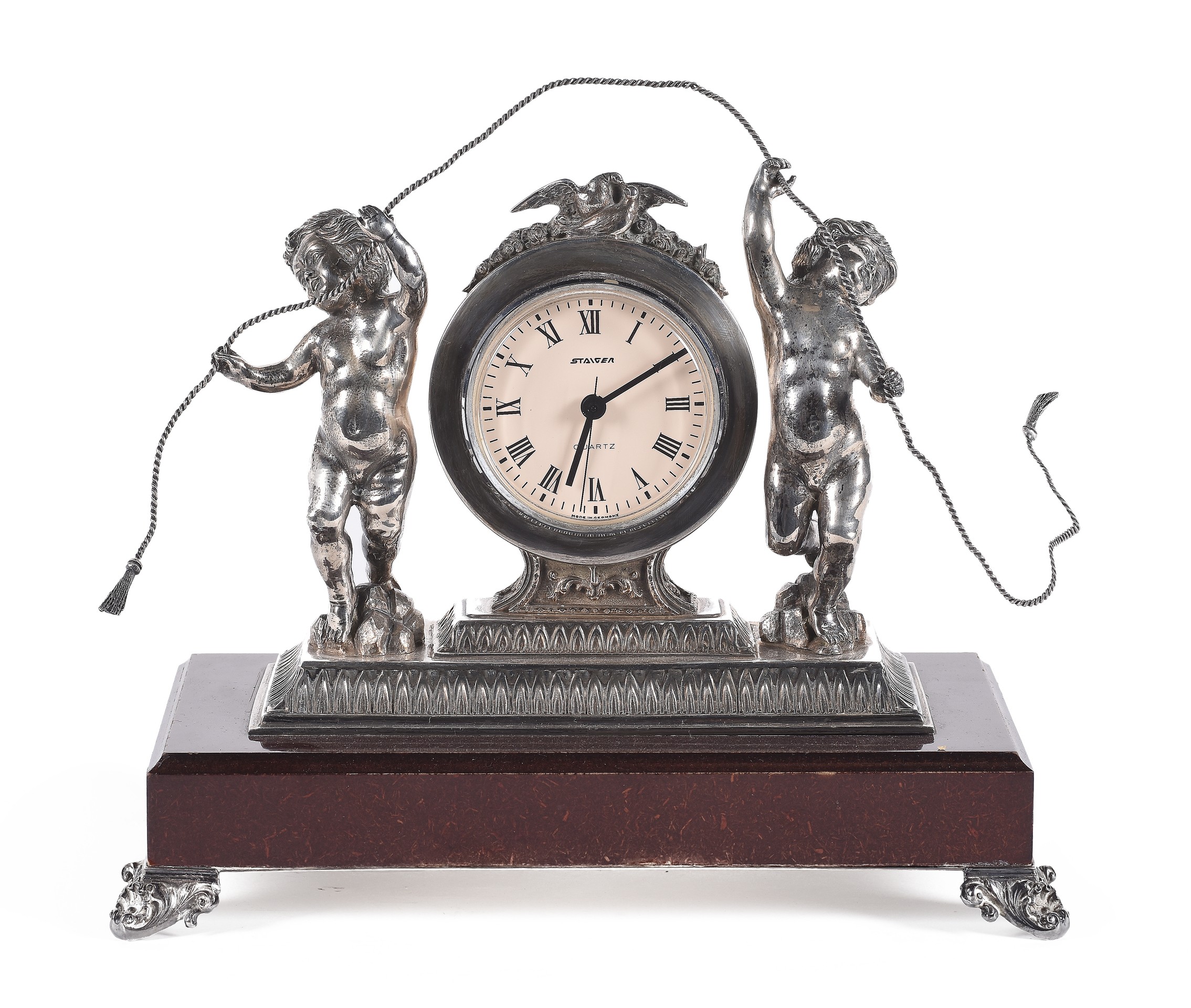Reloj de mesa realizado en resina con baño de plata representando "Angelotes".